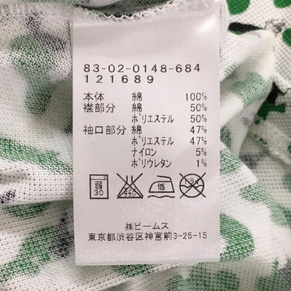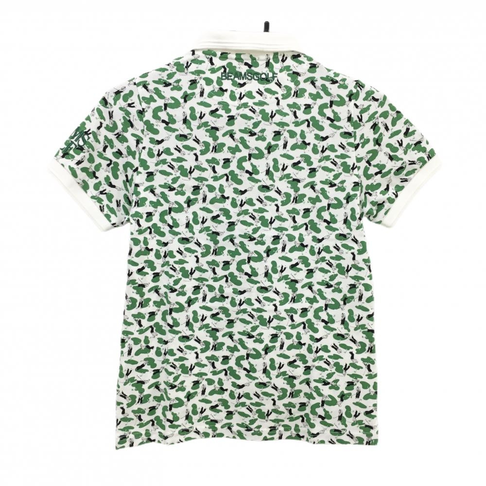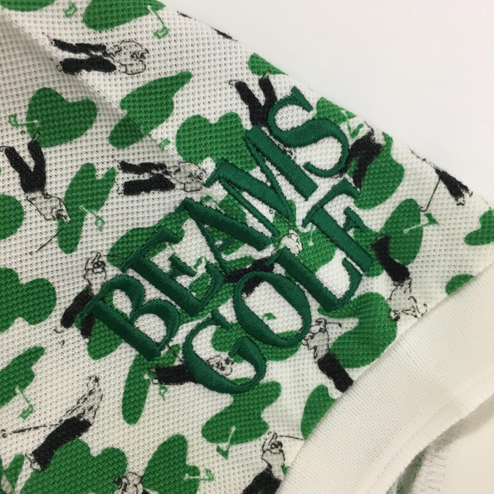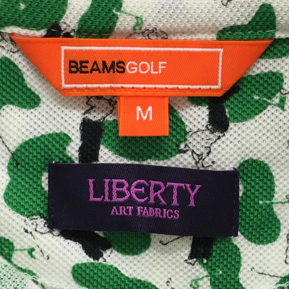 【美品】ビームスゴルフ×LIBERTY 半袖ポロシャツ 白×グリーン×黒 総柄 ゴルファー レディース M ゴルフウェア BEAMS GOLF