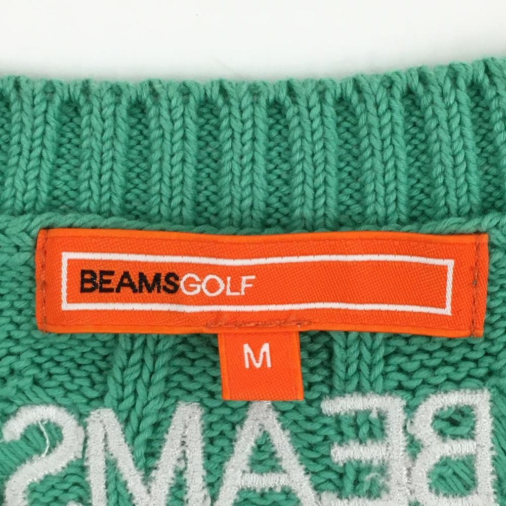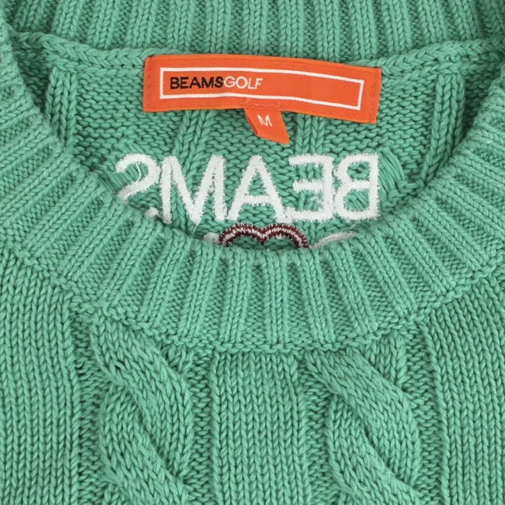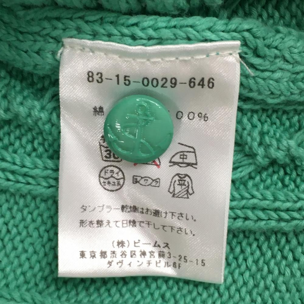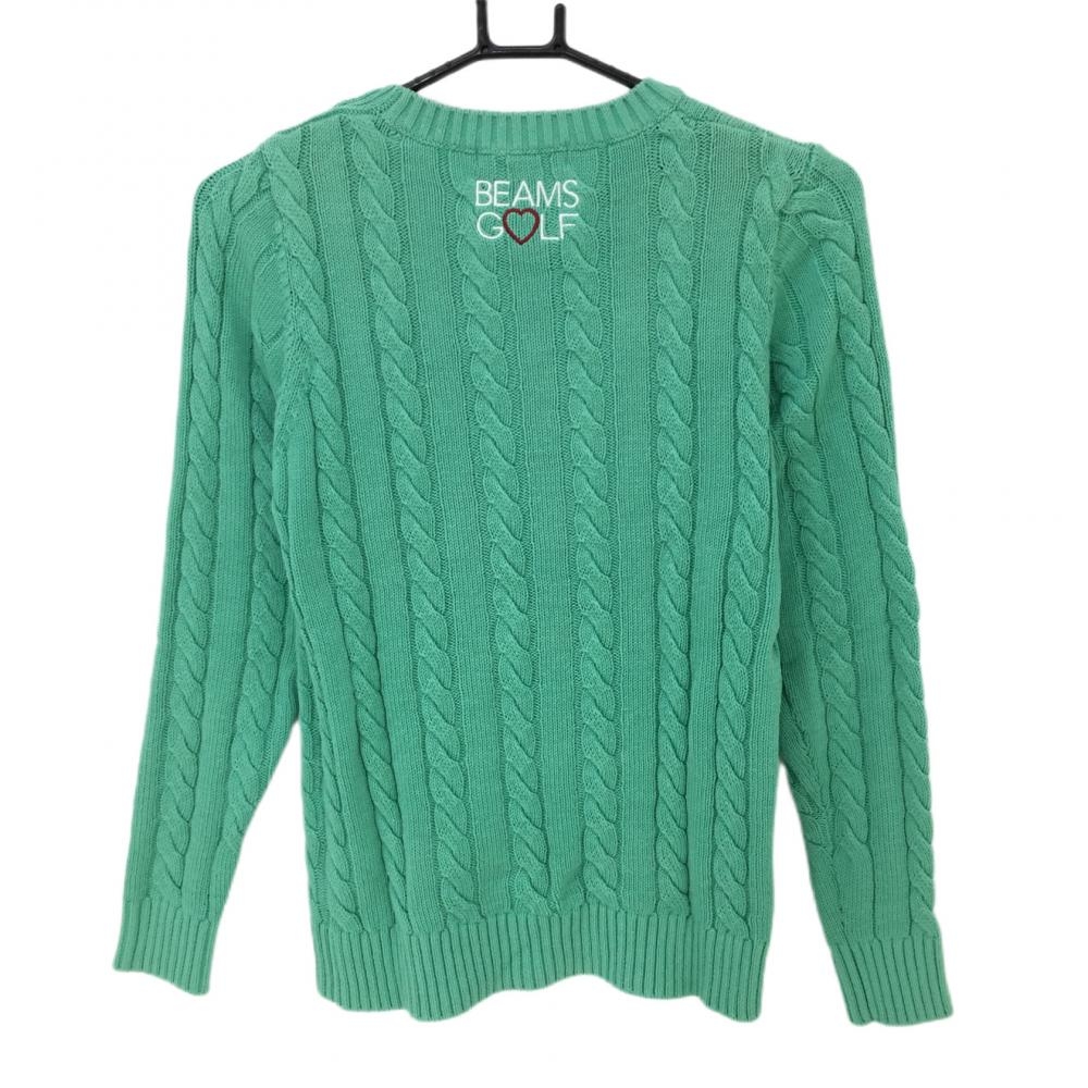 ビームスゴルフ セーター ミントグリーン ケーブル編み 綿100% 肩ボタン ニット レディース M ゴルフウェア BEAMS GOLF