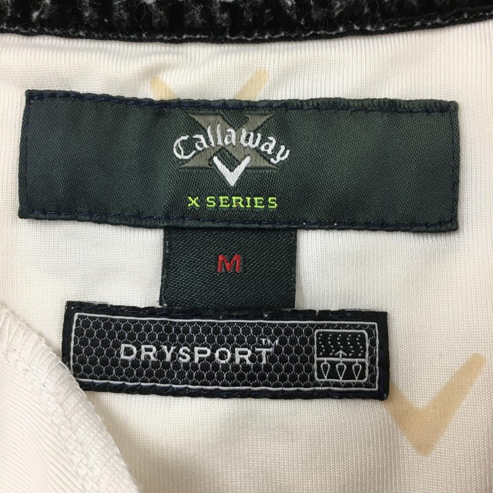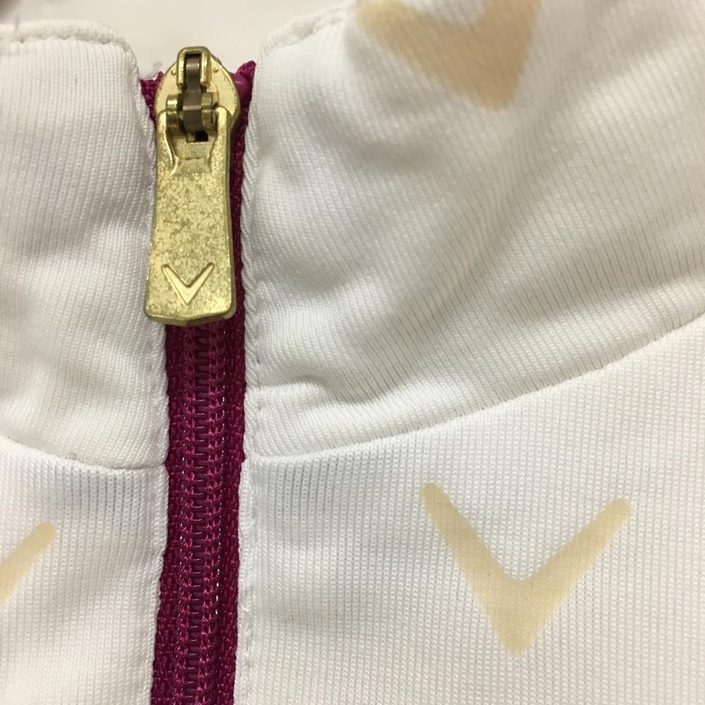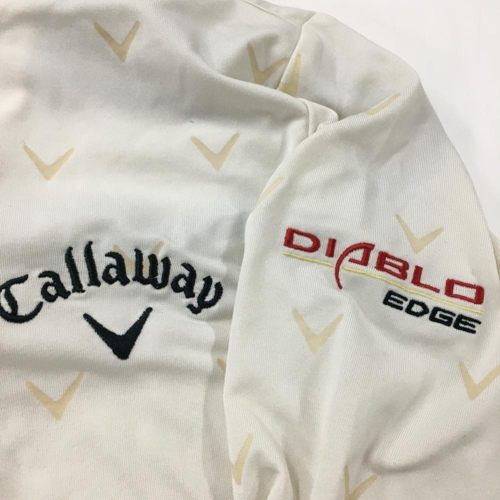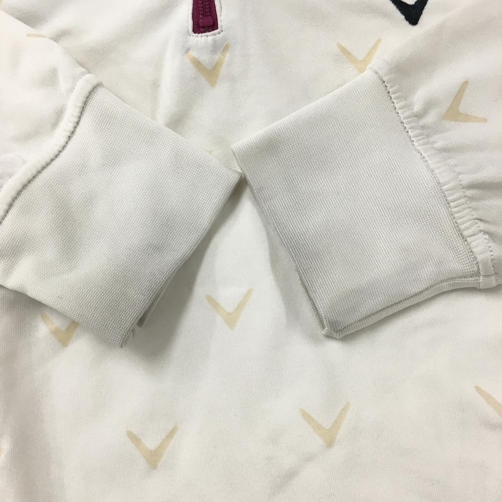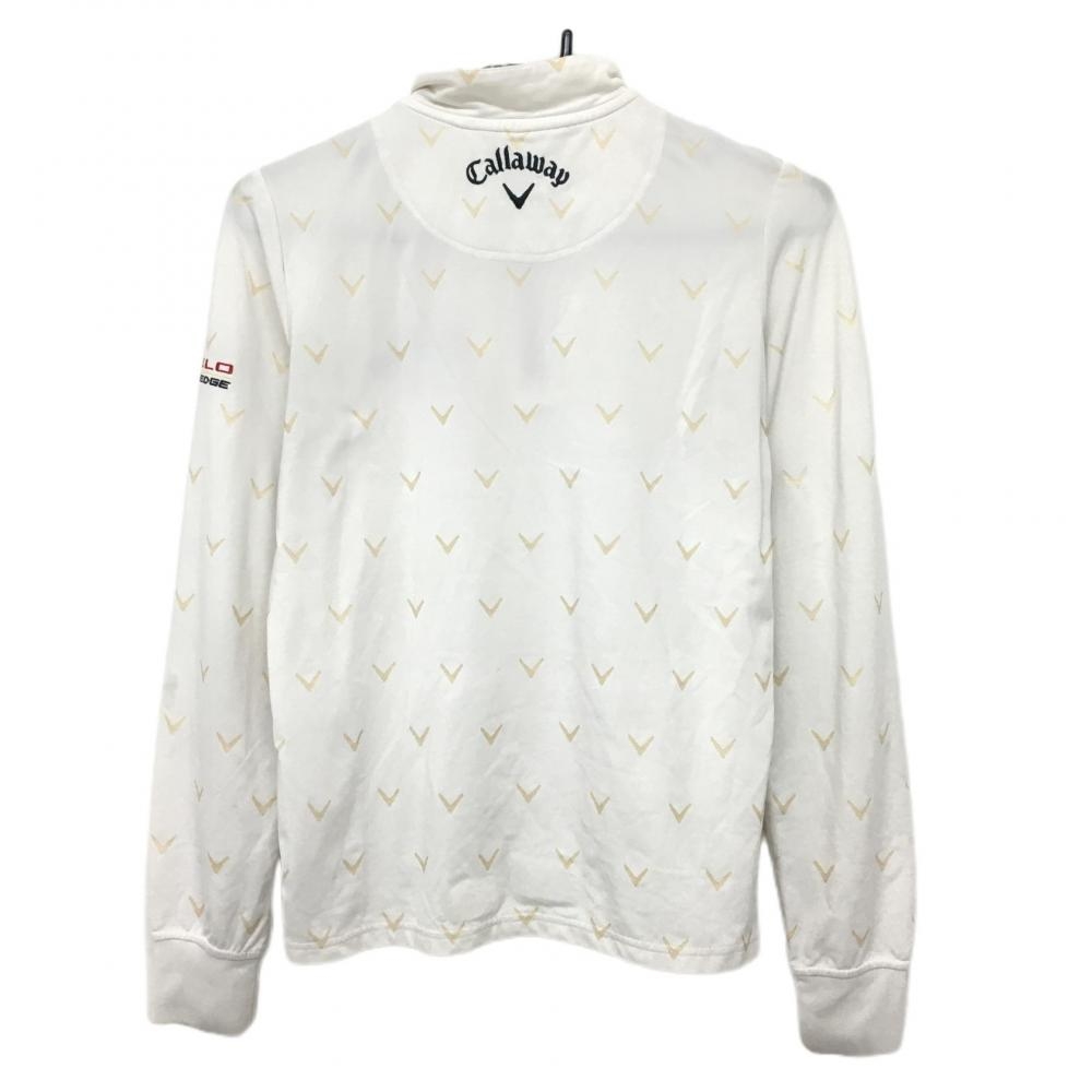 キャロウェイ 長袖ハイネックシャツ 白×ベージュ ロゴ総柄 裏微起毛 ハーフジップ ストレッチ レディース M ゴルフウェア Callaway