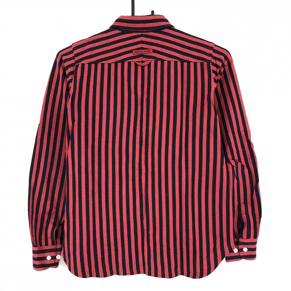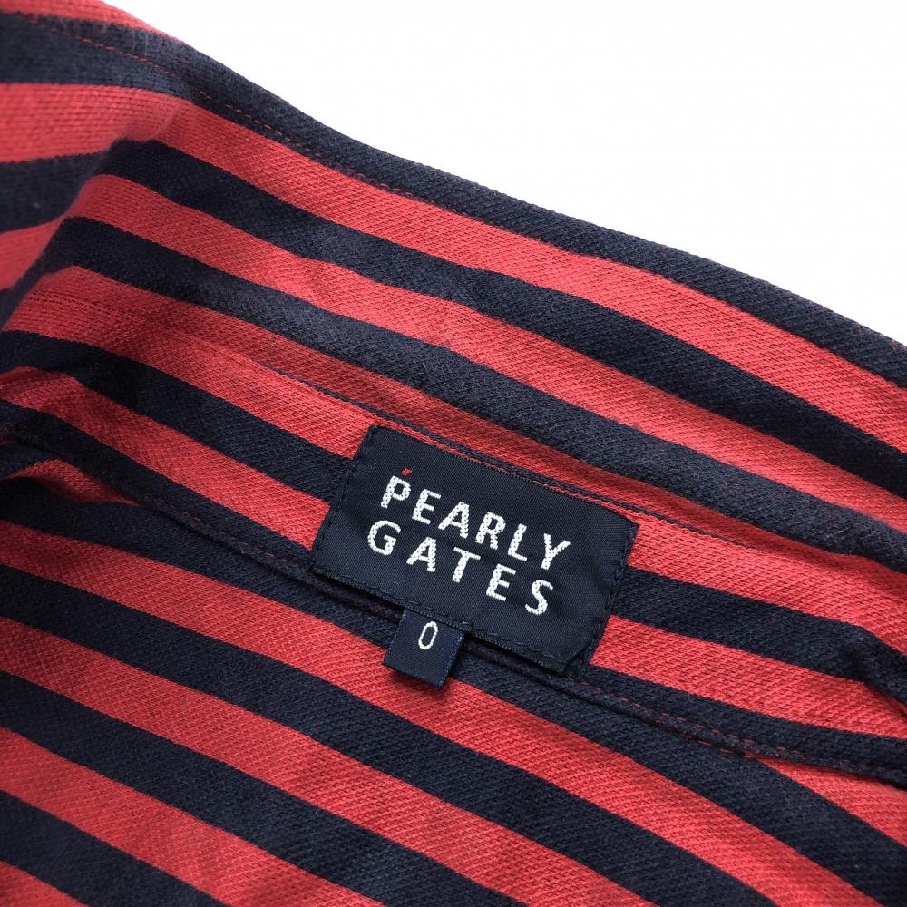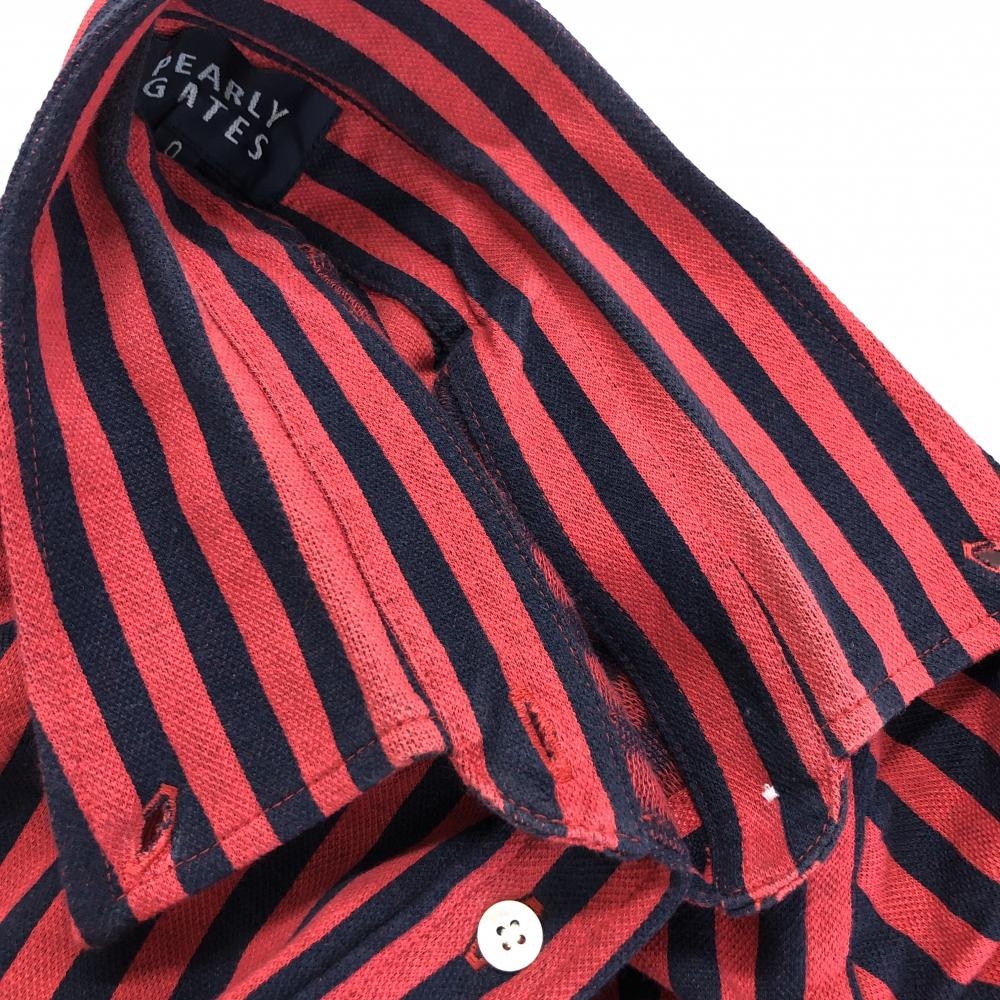 パーリーゲイツ 長袖シャツ レッド×ネイビー ストライプ ボタンダウン レディース 0(S) ゴルフウェア PEARLY GATES