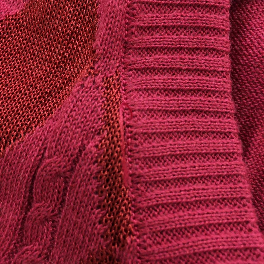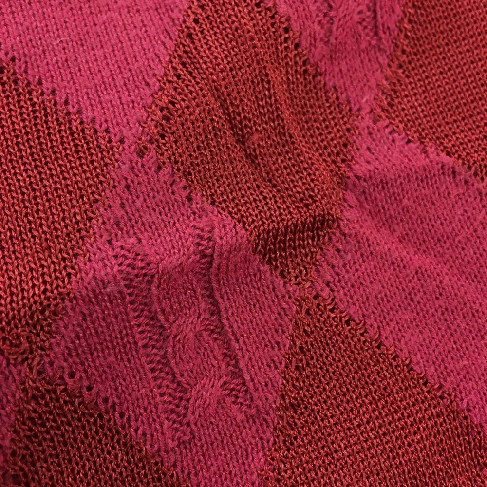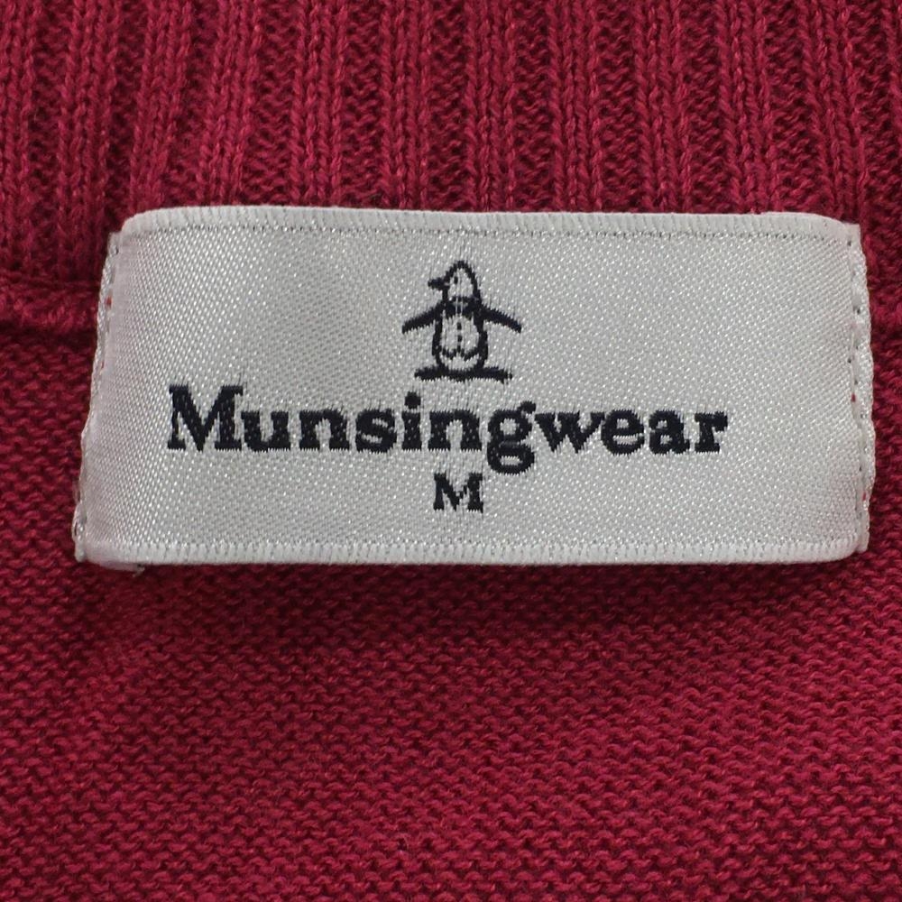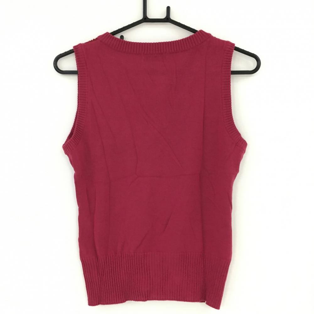 マンシングウェア ニットベスト ピンク×レッド ダイヤ柄 ケーブル編み サイドボタン レディース M ゴルフウェア Munsingwear