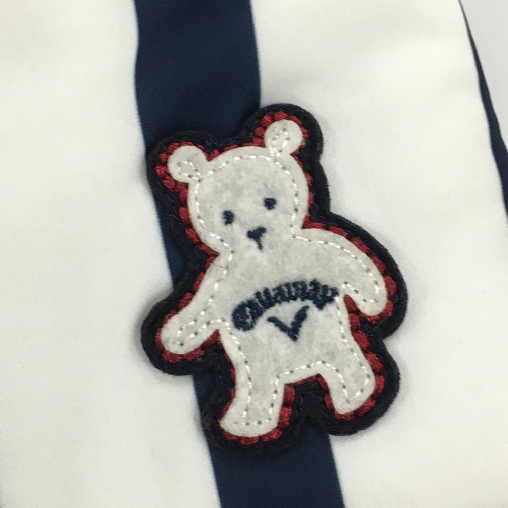 【超美品】キャロウェイ 中綿スカート 白×ネイビー ストライプ フルジップ レディース SS ゴルフウェア Callaway