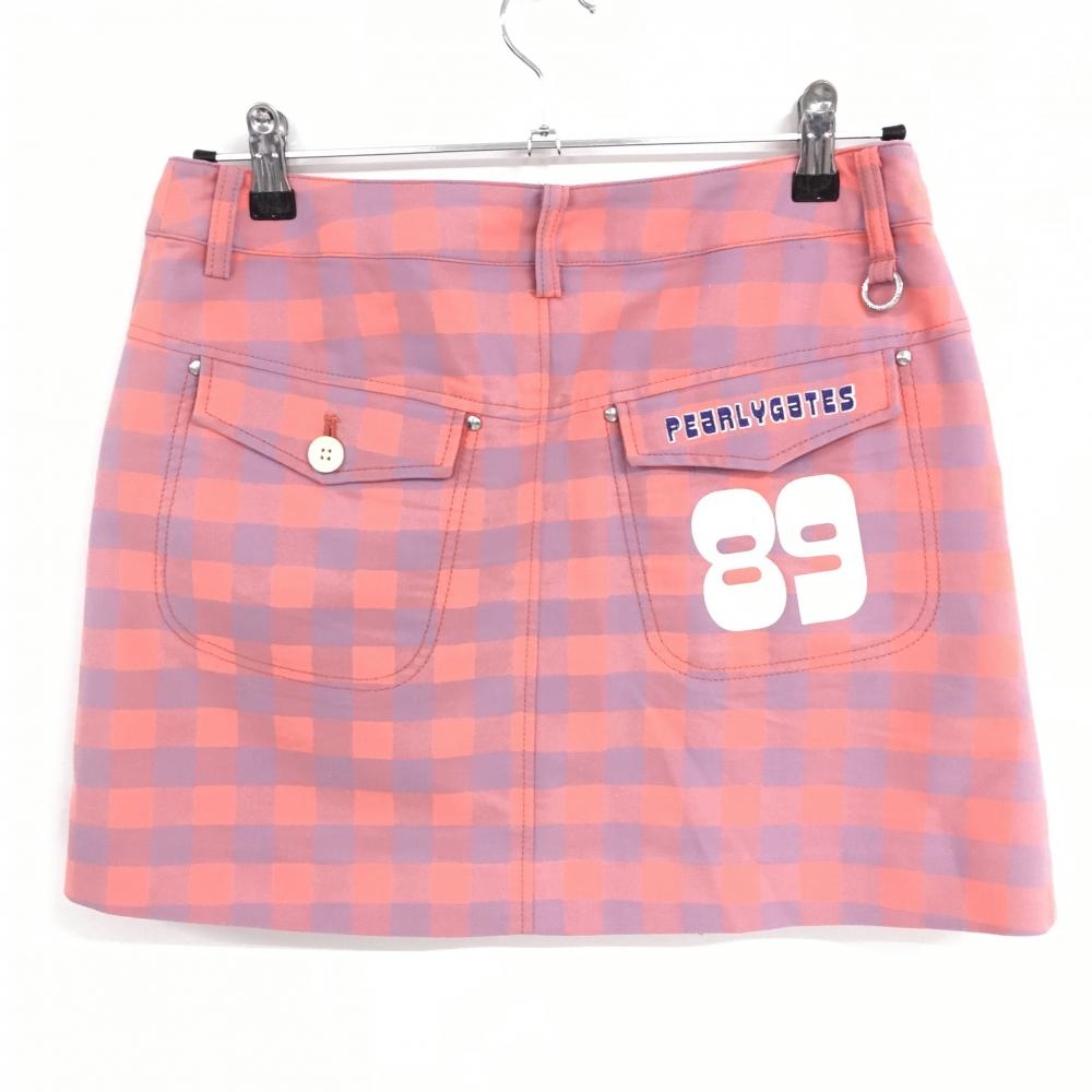 【美品】パーリーゲイツ プリーツスカート ピンク×ライトパープル チェック柄 複数ポケット レディース 1(M) ゴルフウェア PEARLY GATES