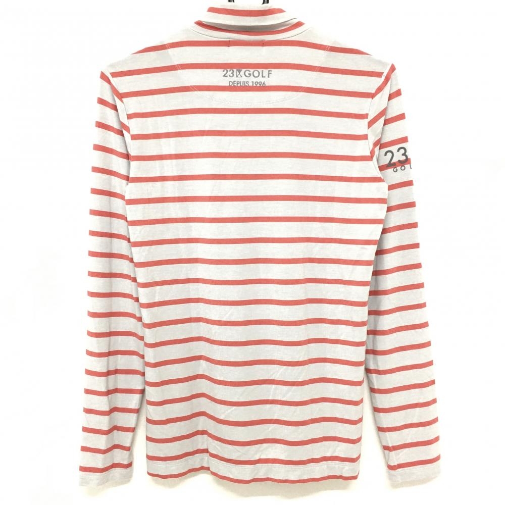 23区ゴルフ 長袖ハイネックシャツ グレー×レッド ボーダー柄 ストレッチ レディース II(L) ゴルフウェア 23区