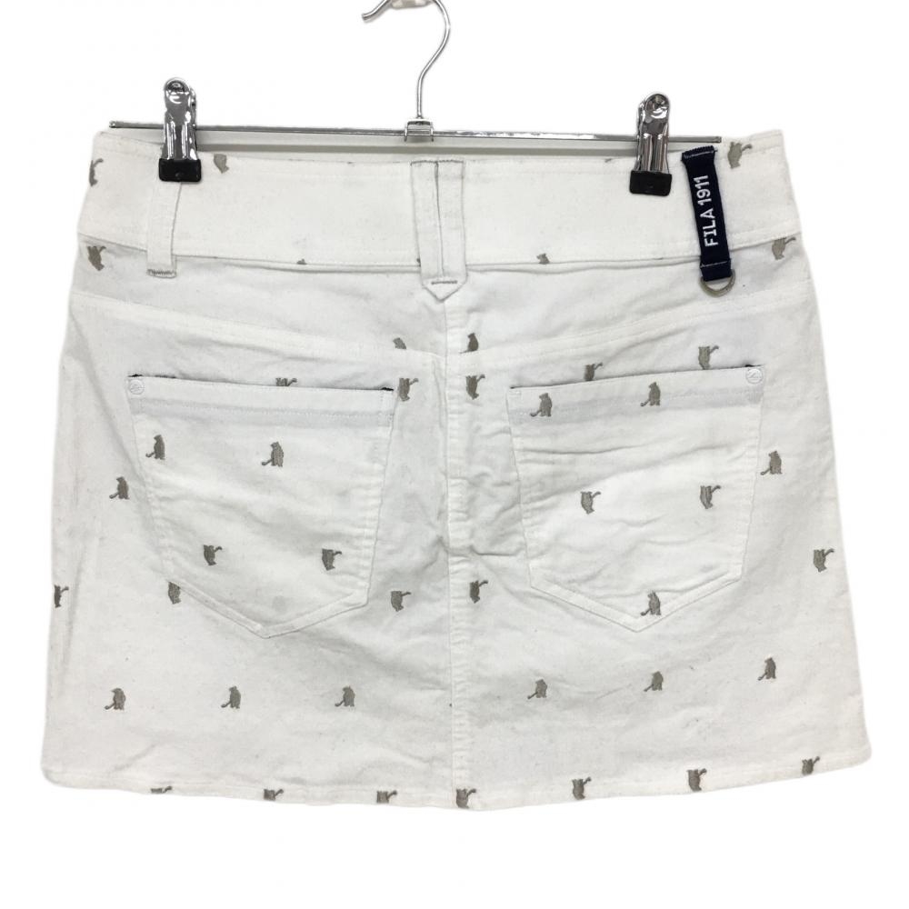 フィラゴルフ コーデュロイスカート 白×ライトグレー 刺しゅう総柄 ストレッチ レディース L ゴルフウェア FILA GOLF