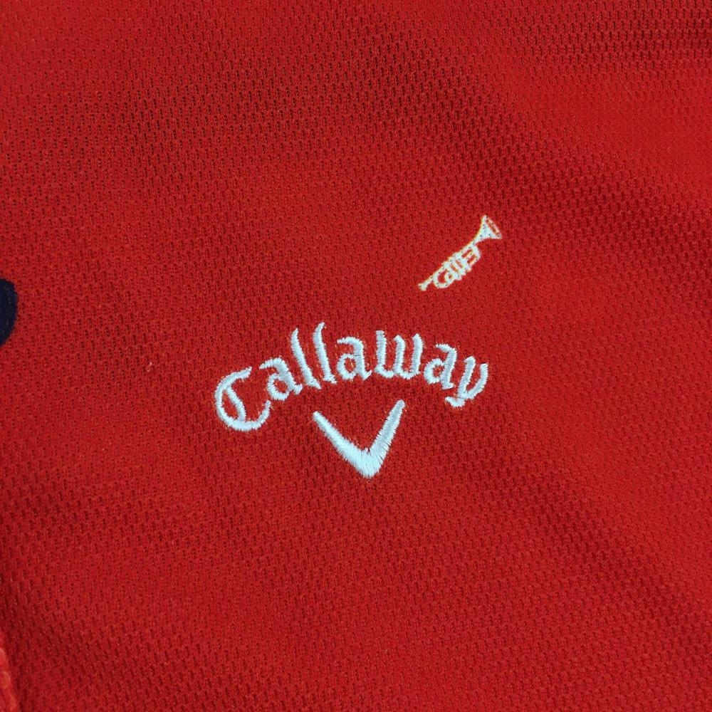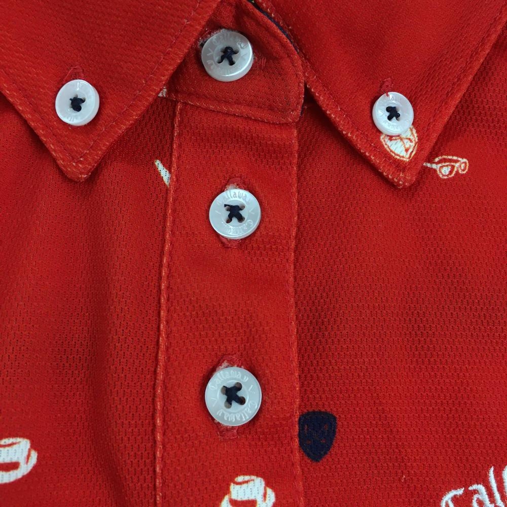【超美品】キャロウェイ 長袖ポロシャツ レッド×白 総柄 ボタンダウン レディース S ゴルフウェア Callaway