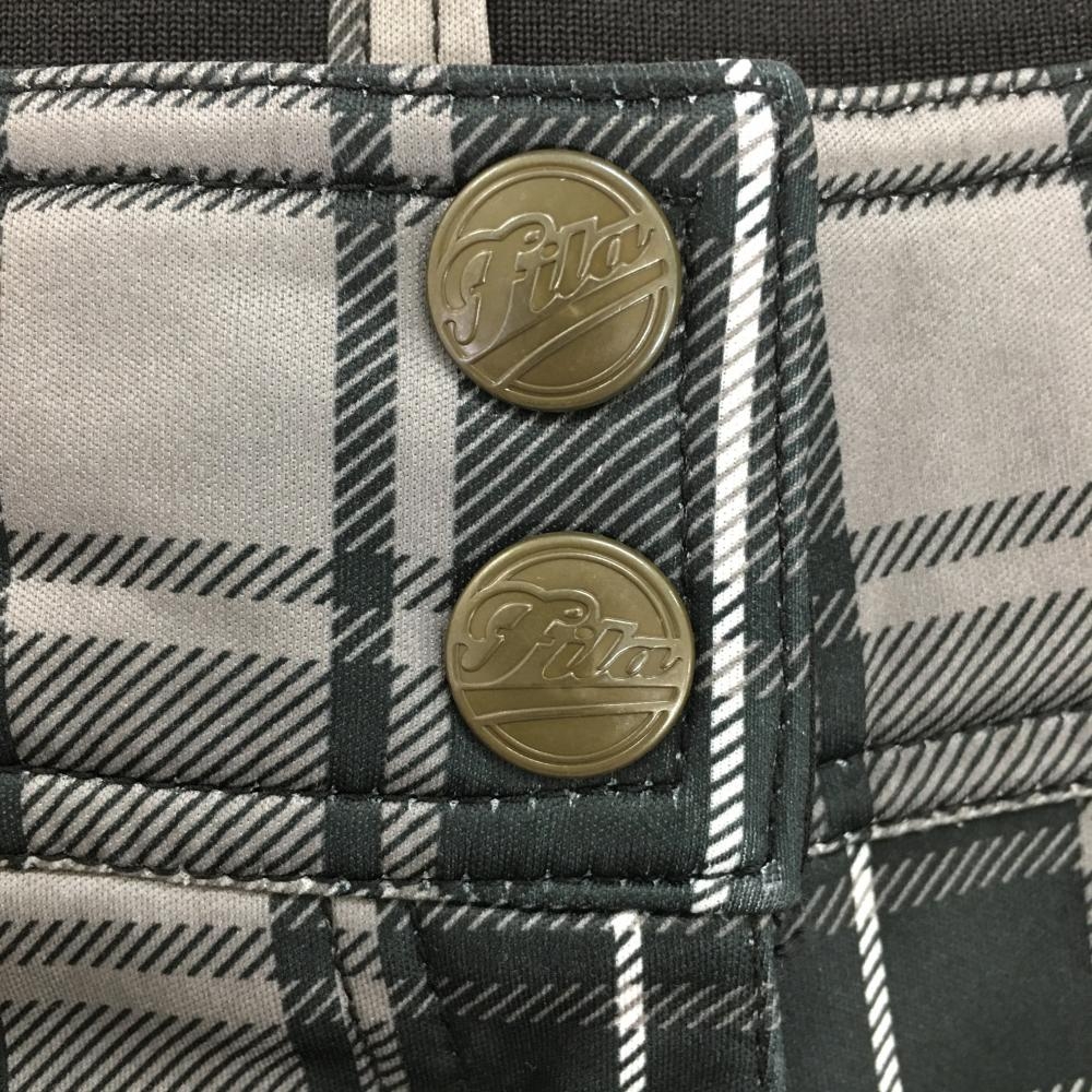 【美品】フィラゴルフ パンツ ライトグレー×黒 チェック柄 裏起毛 後ろウエストゴム レディース L ゴルフウェア FILA GOLF