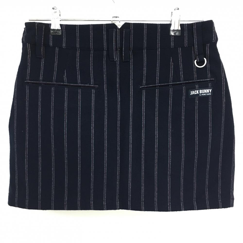 【超美品】ジャックバニー スカート ネイビー×ボルドー ストライプ 表微起毛 ストレッチ レディース 1(M) ゴルフウェア Jack Bunny