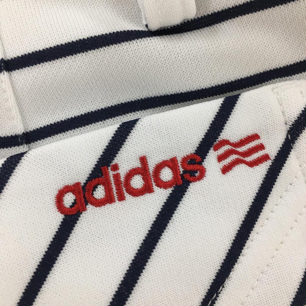 【美品】アディダス スカート 白×ネイビー ボーダー ストライプ 蓄熱裏地 レディース S/P ゴルフウェア adidas