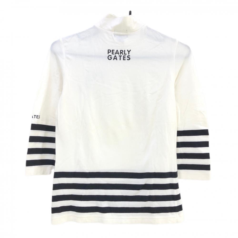パーリーゲイツ 長袖ハイネックシャツ 白×黒 一部ボーダー 七分袖 バックロゴ レディース 0(S) ゴルフウェア PEARLY GATES