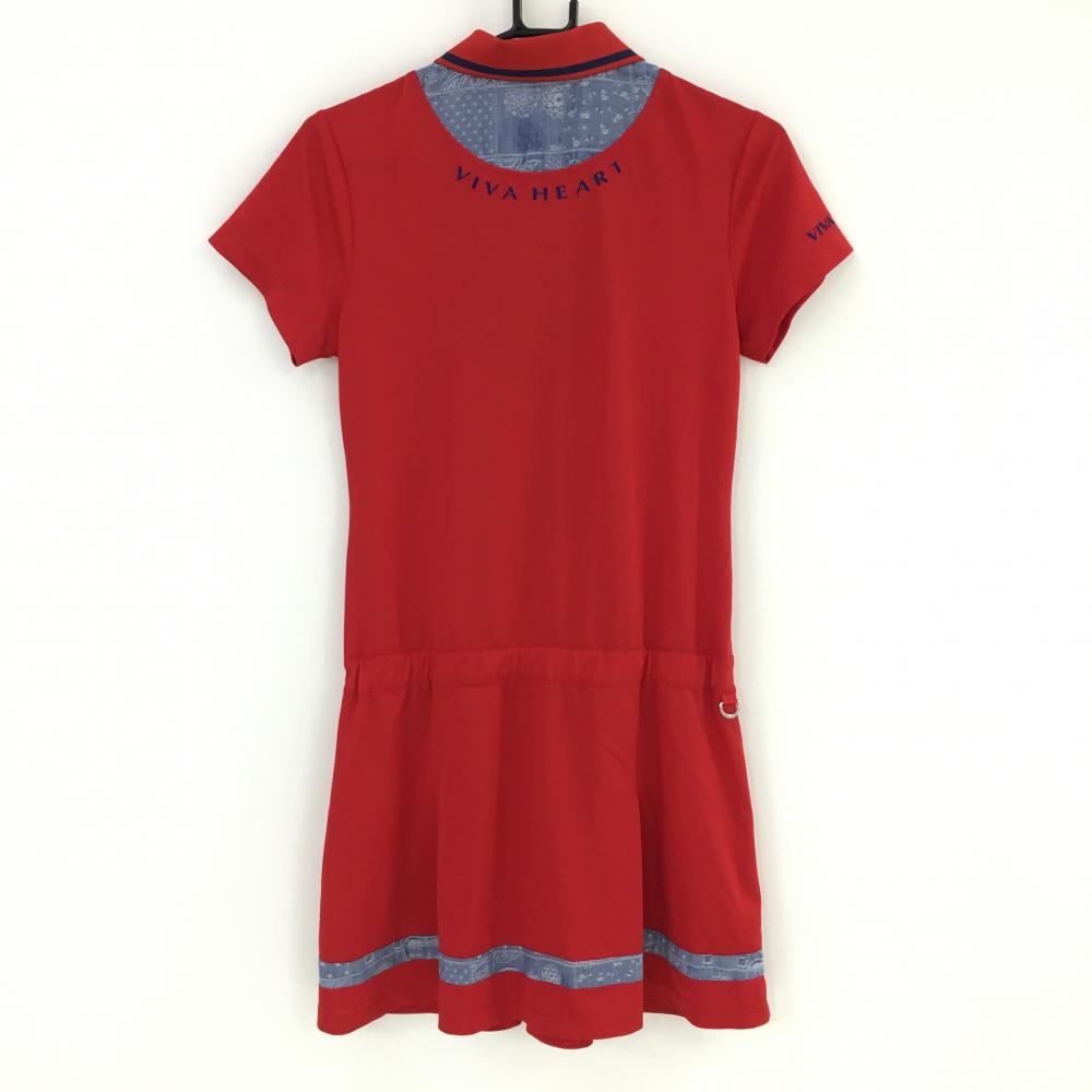 【超美品】ビバハート 半袖ポロワンピース レッド×ネイビー ウエストゴム 異素材 レディース 40 ゴルフウェア VIVA HEART