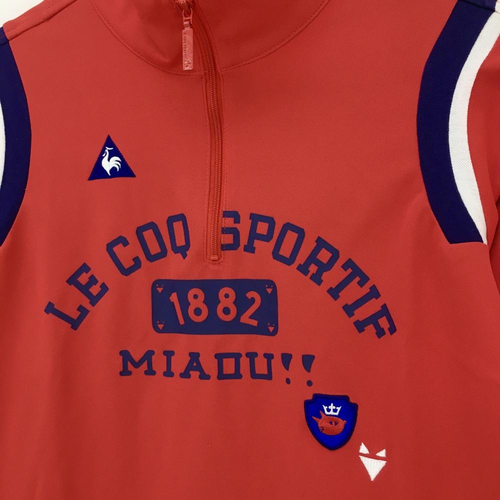 【超美品】ルコック 長袖ハイネックシャツ レッド×ネイビー 肩異素材 ハーフジップ レディース M ゴルフウェア le coq sportif