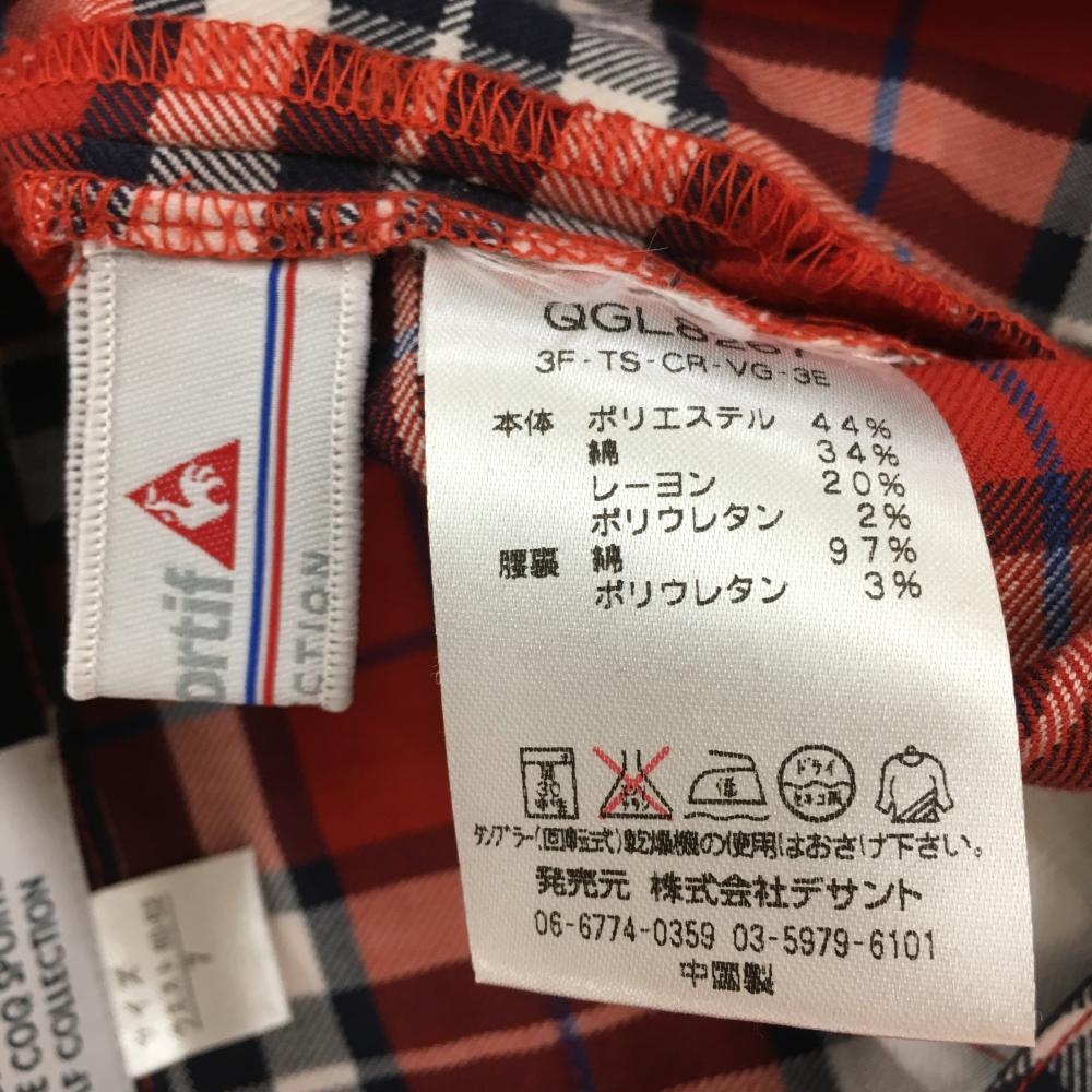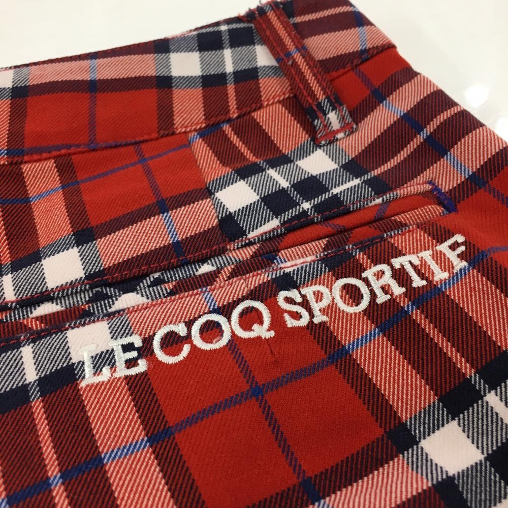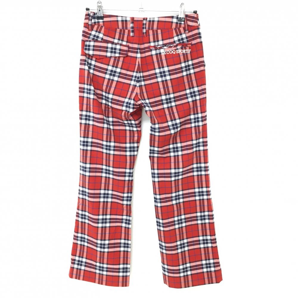 【超美品】ルコック パンツ レッド×ネイビー チェック レディース 7 ゴルフウェア le coq sportif