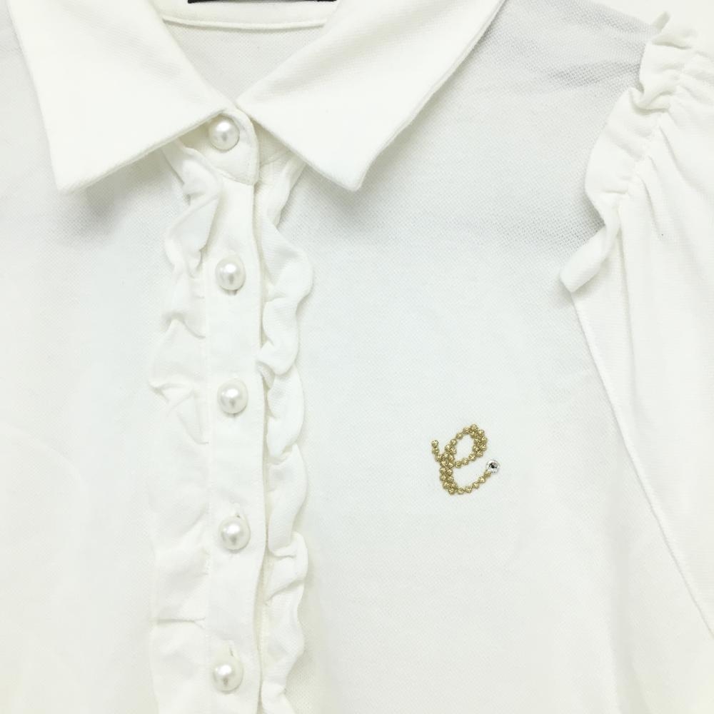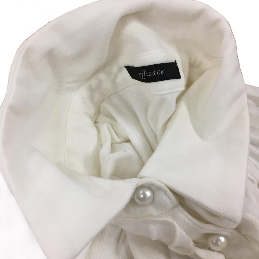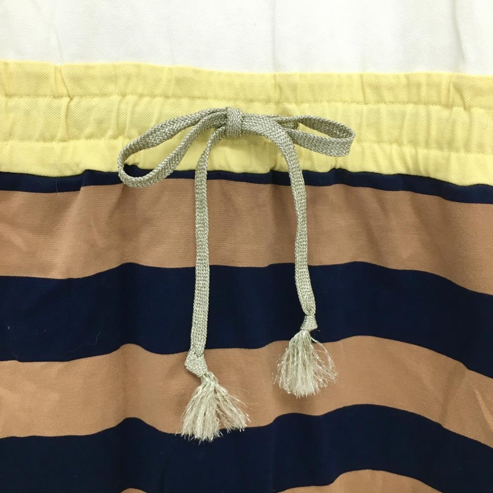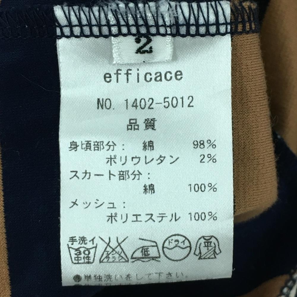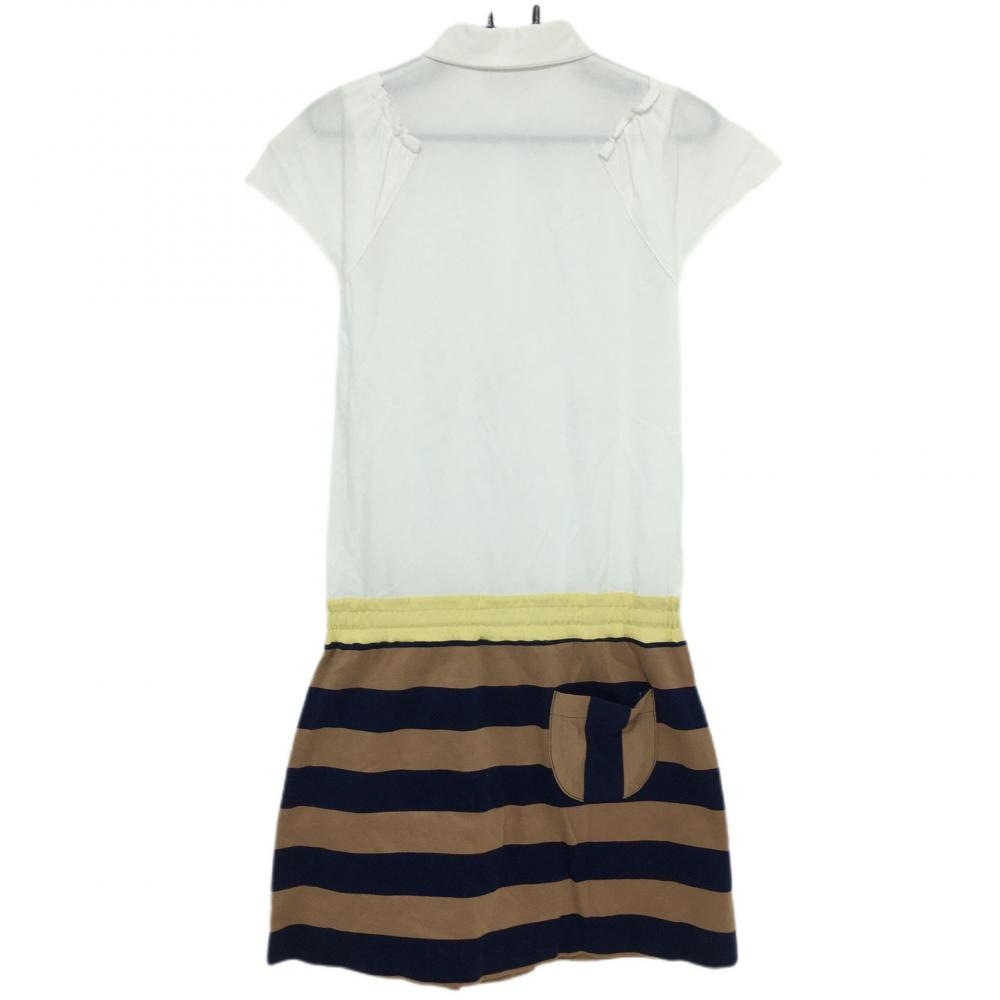 エフィカス 半袖ポロワンピース 白×ブラウン×ネイビー スカート部ボーダー レディース 2 ゴルフウェア efficace