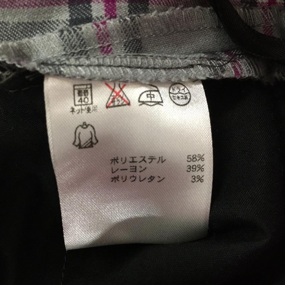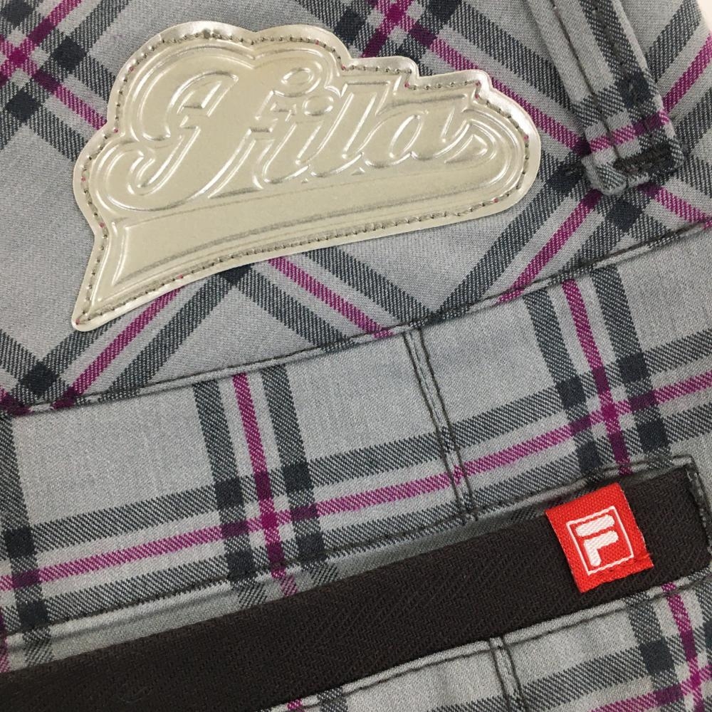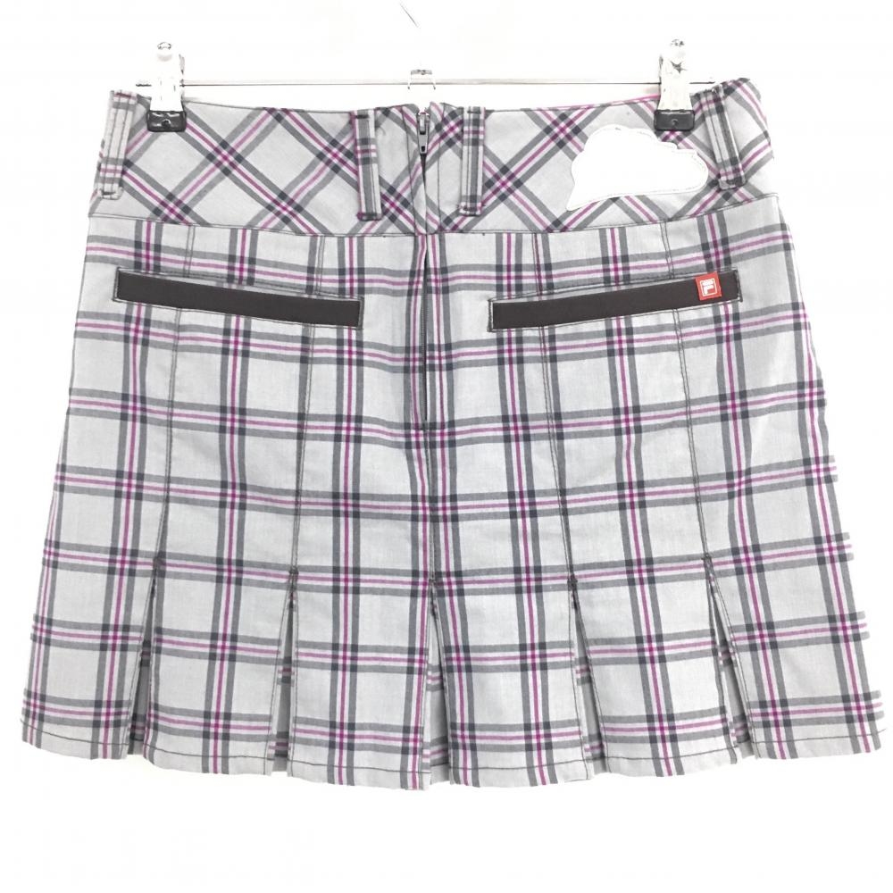 【超美品】フィラゴルフ ボックスプリーツスカート ライトグレー×パープル チェック レディース L ゴルフウェア FILA GOLF
