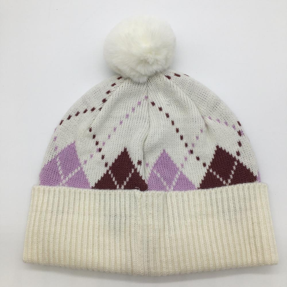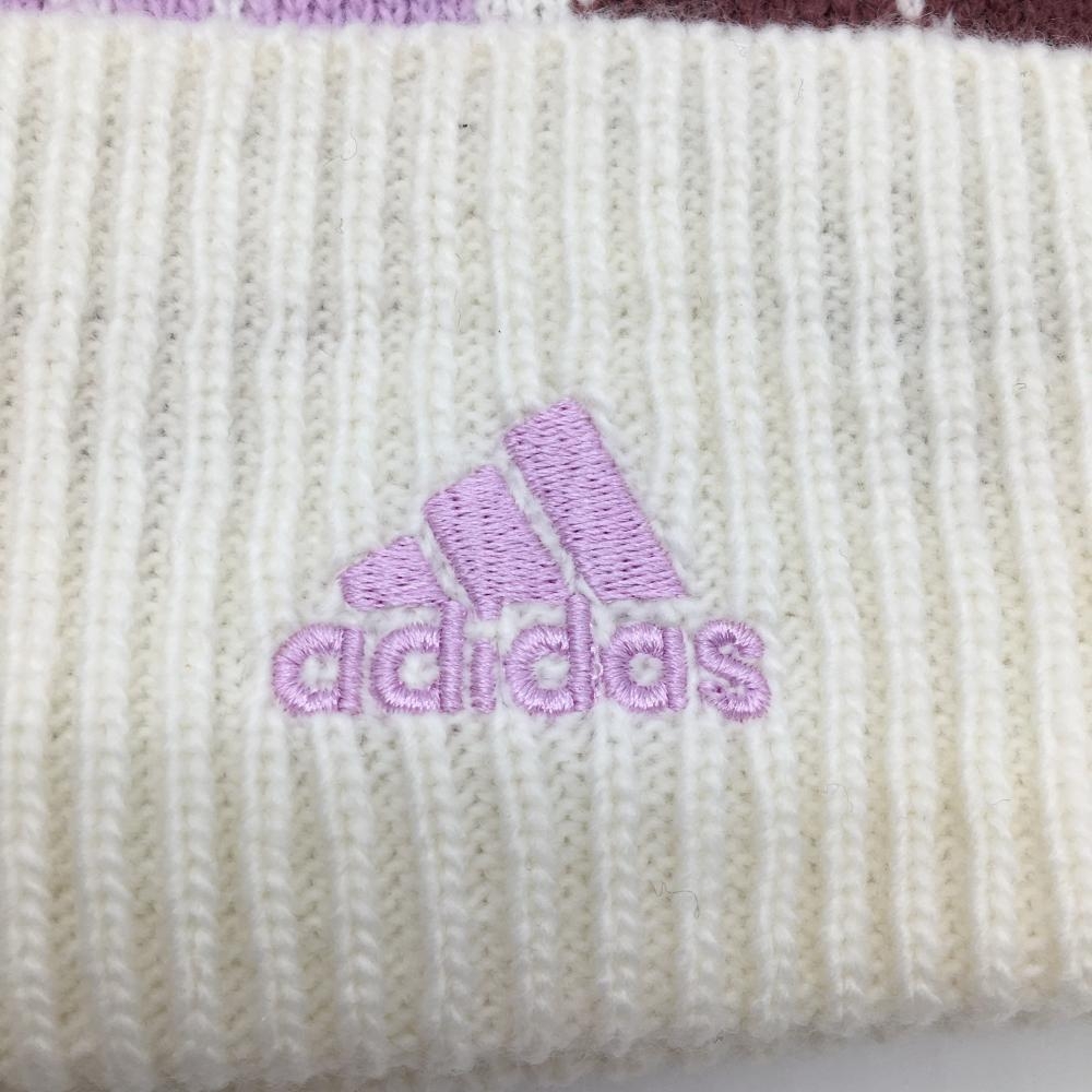 アディダス ニット帽 白×ピンク アーガイル柄 ウール混 レディース フリーサイズ(54‐57㎝) ゴルフウェア 2022年モデル adidas