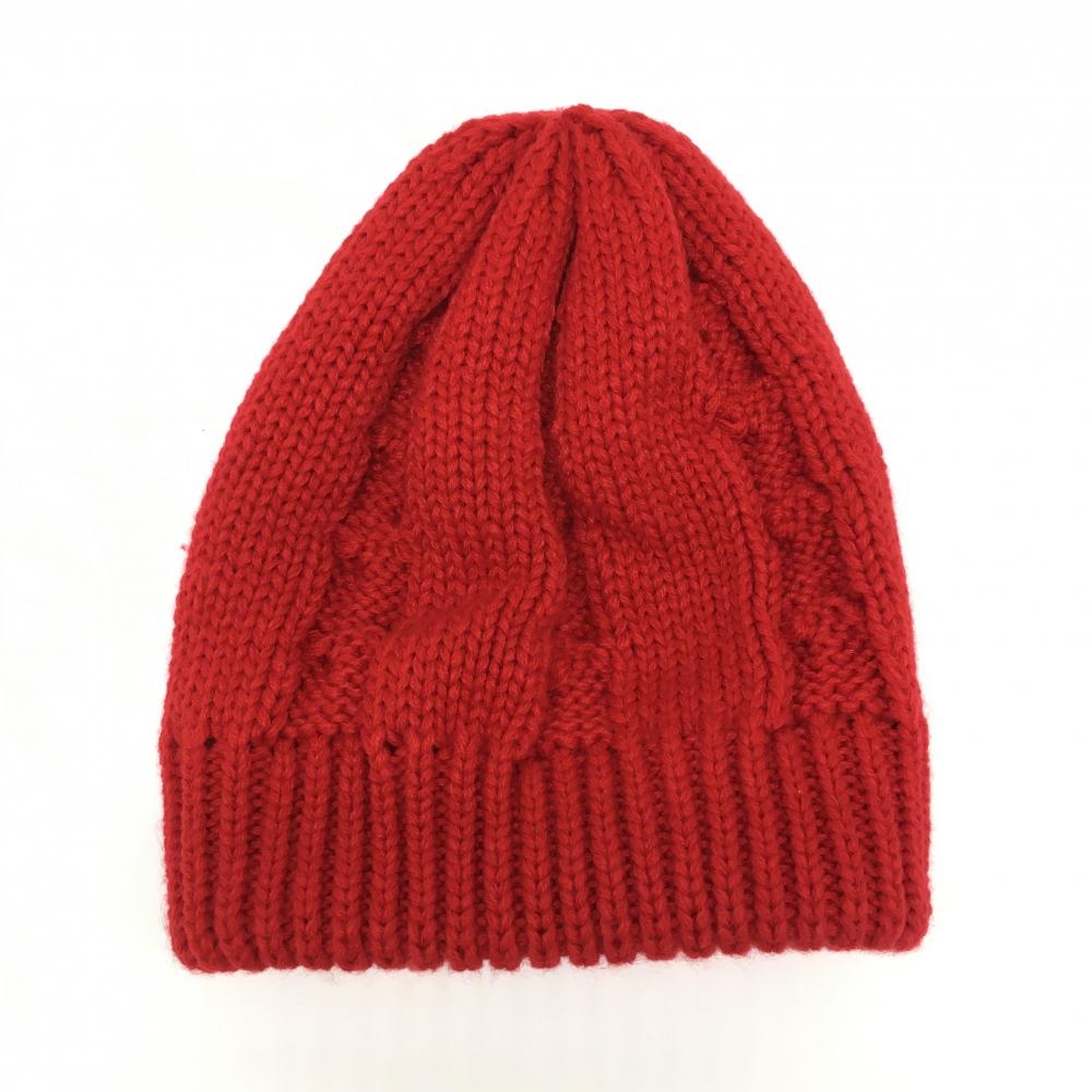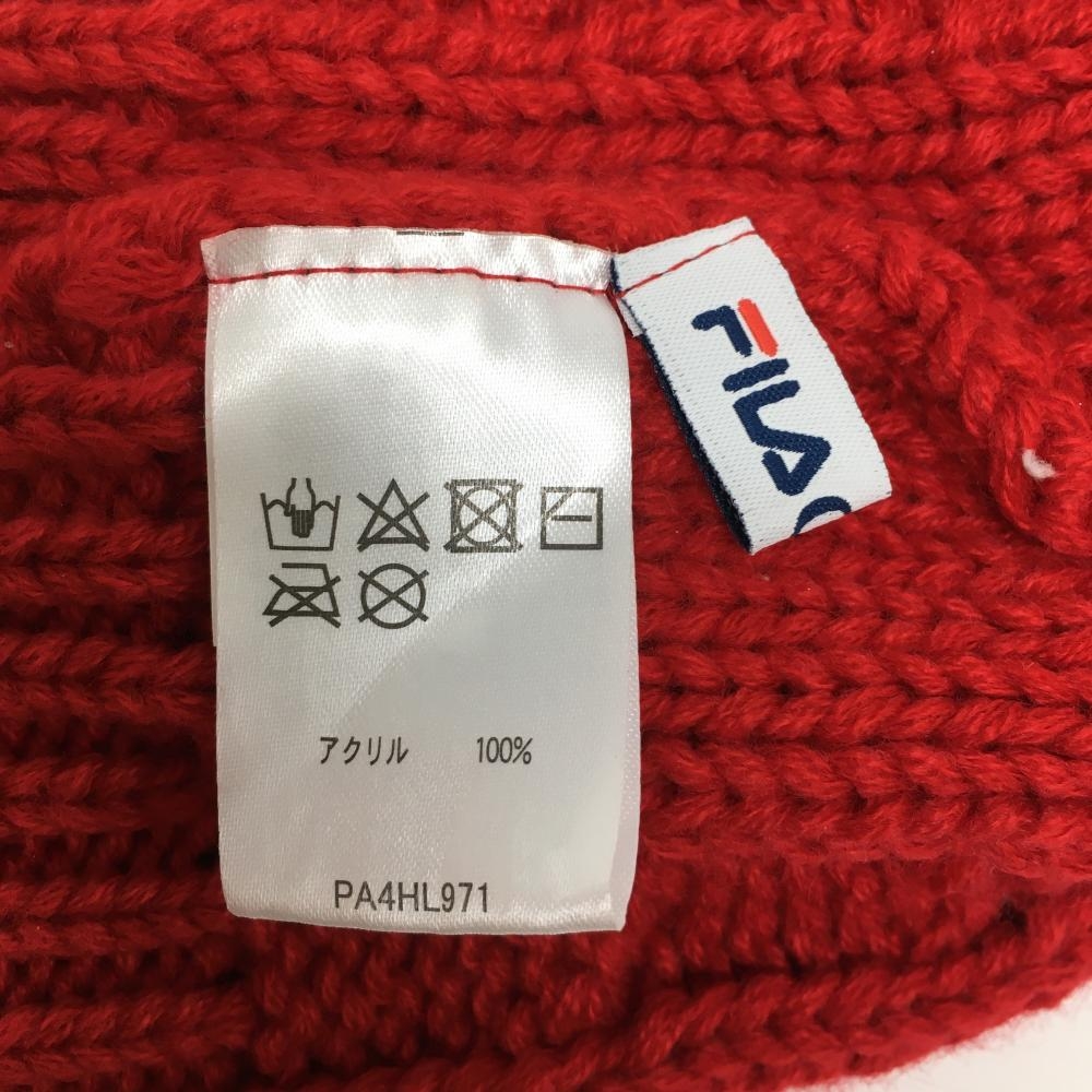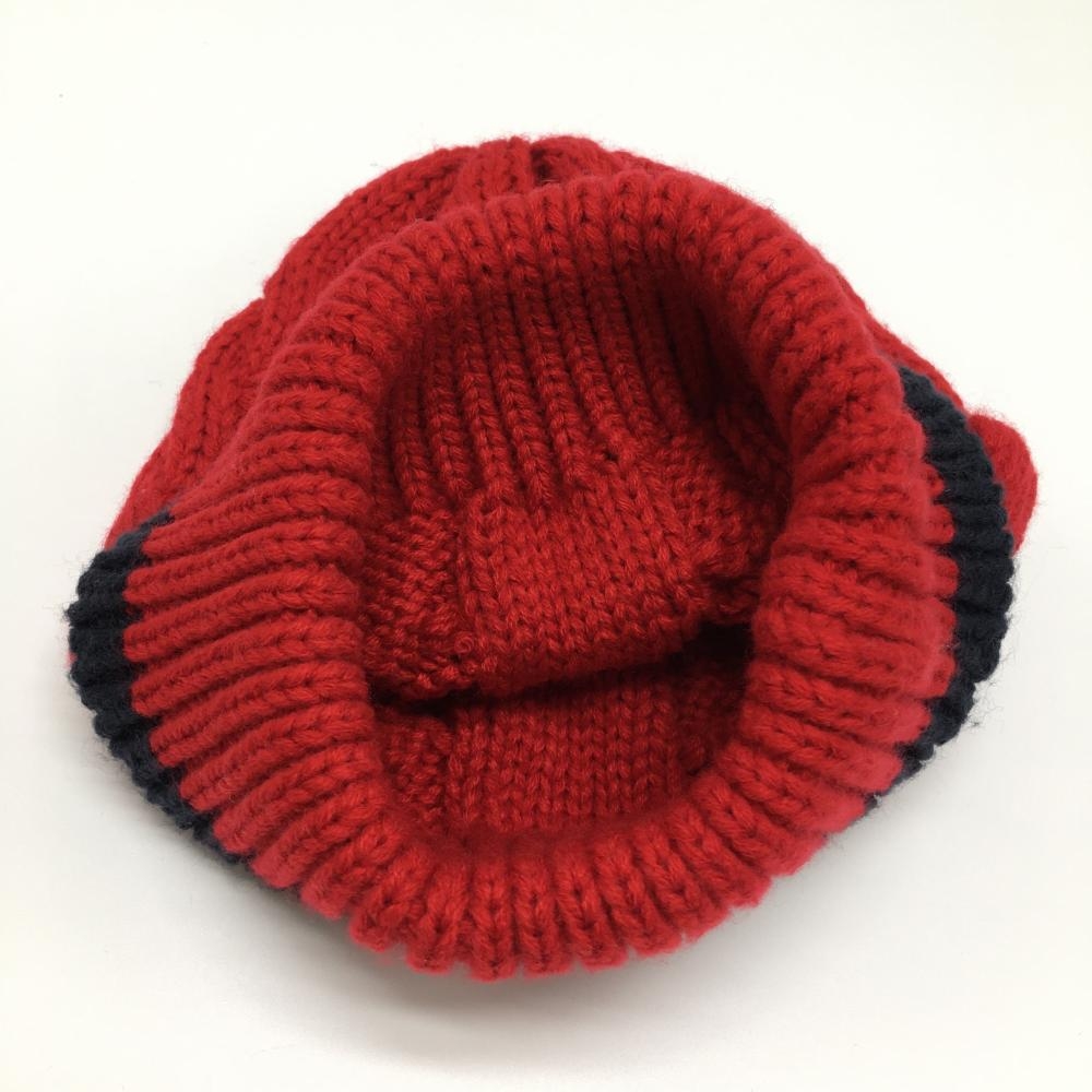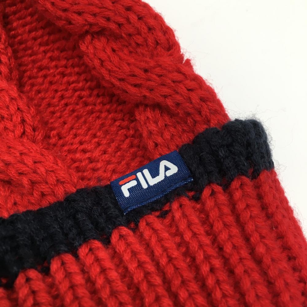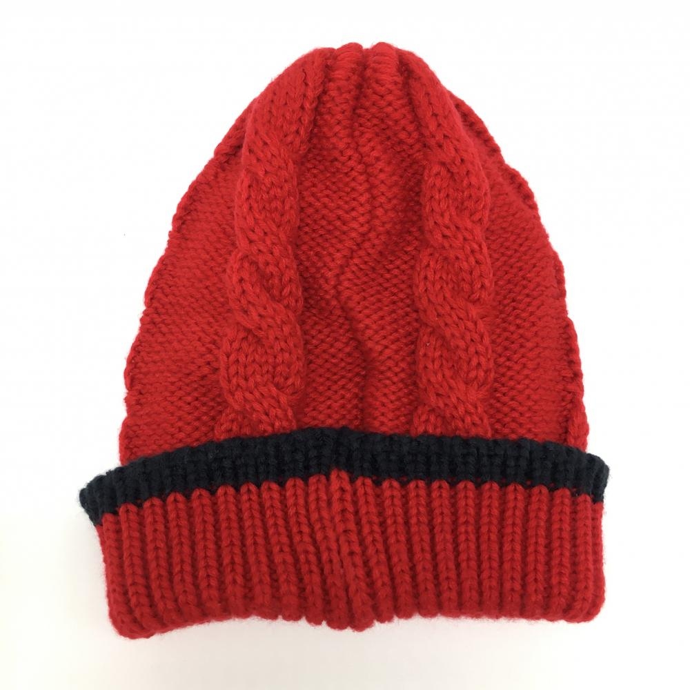 【超美品】フィラゴルフ ニット帽 レッド×ネイビー ケーブル編み ゴルフウェア FILA GOLF