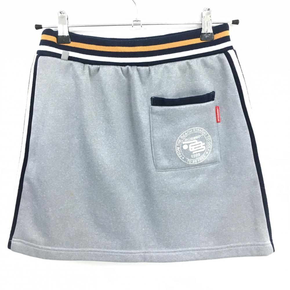 ロサーセン スカート グレー×ネイビー リブボーダー 裏起毛 レディース M ゴルフウェア Rosasen