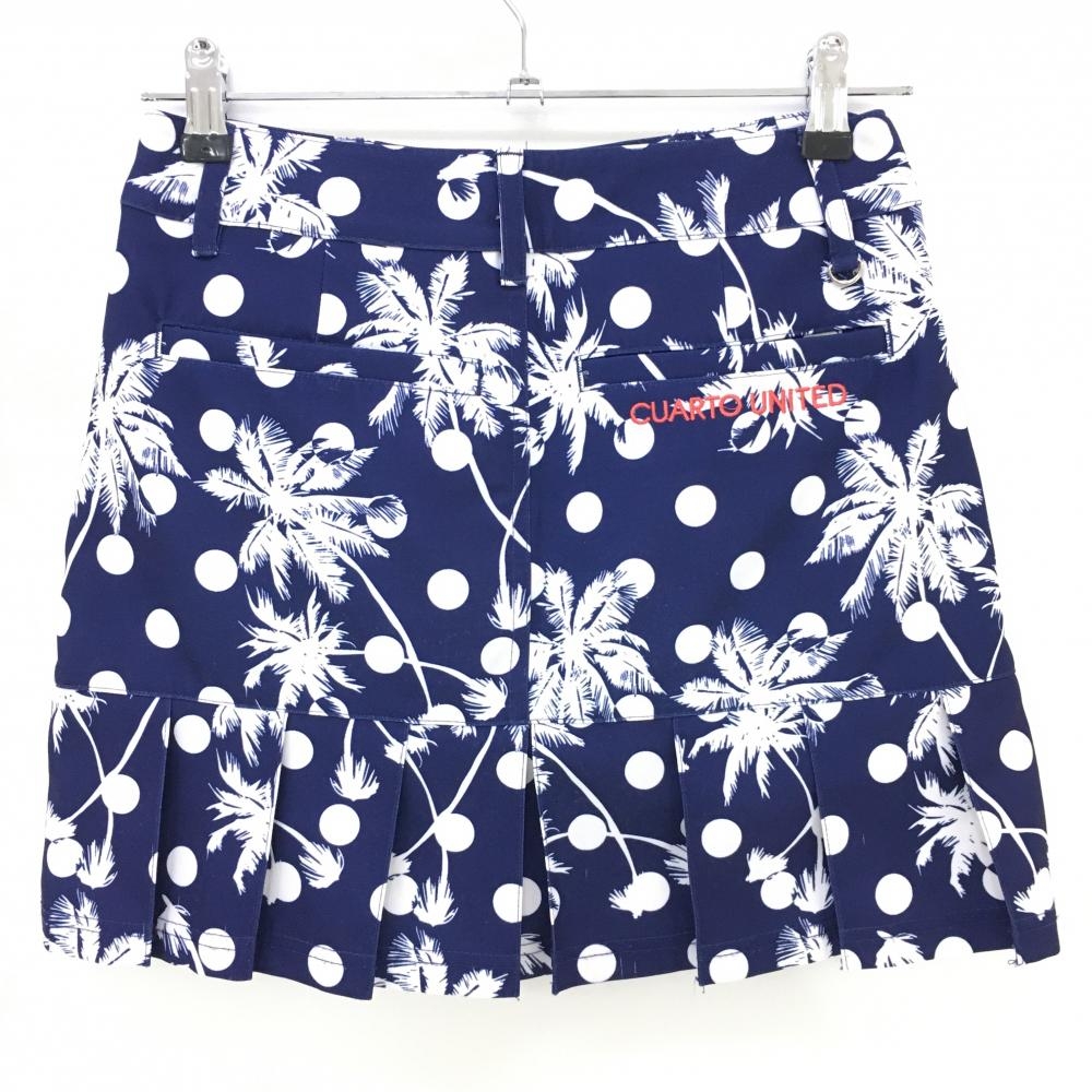 クアルトユナイテッド スカート ネイビー×白 ヤシの木 総柄 レディース S ゴルフウェア CUARTO UNITED