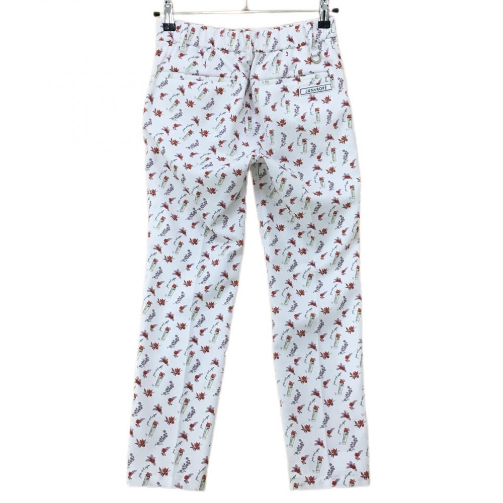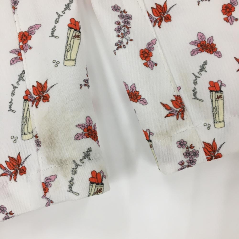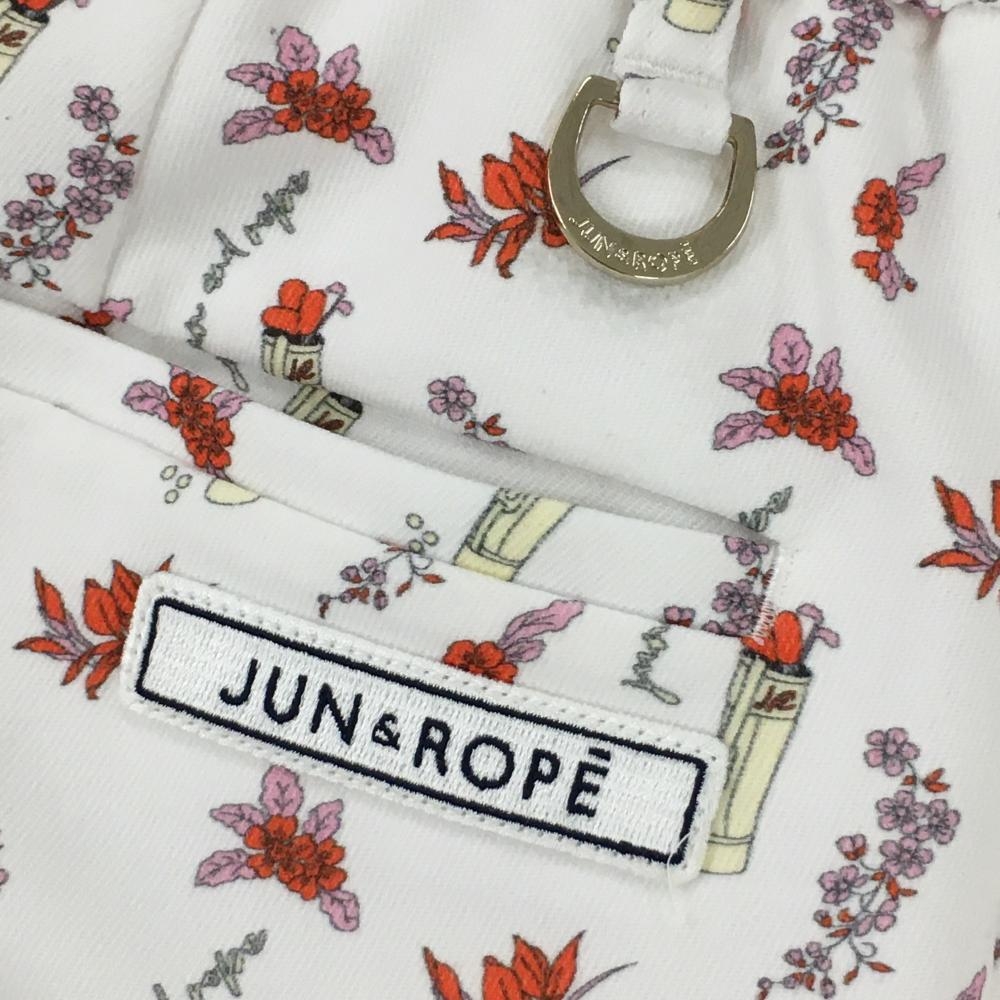 ジュンアンドロペ パンツ 白×レッド 総柄 花 ゴルフケース レディース S ゴルフウェア JUN&ROPE