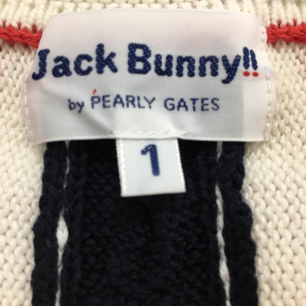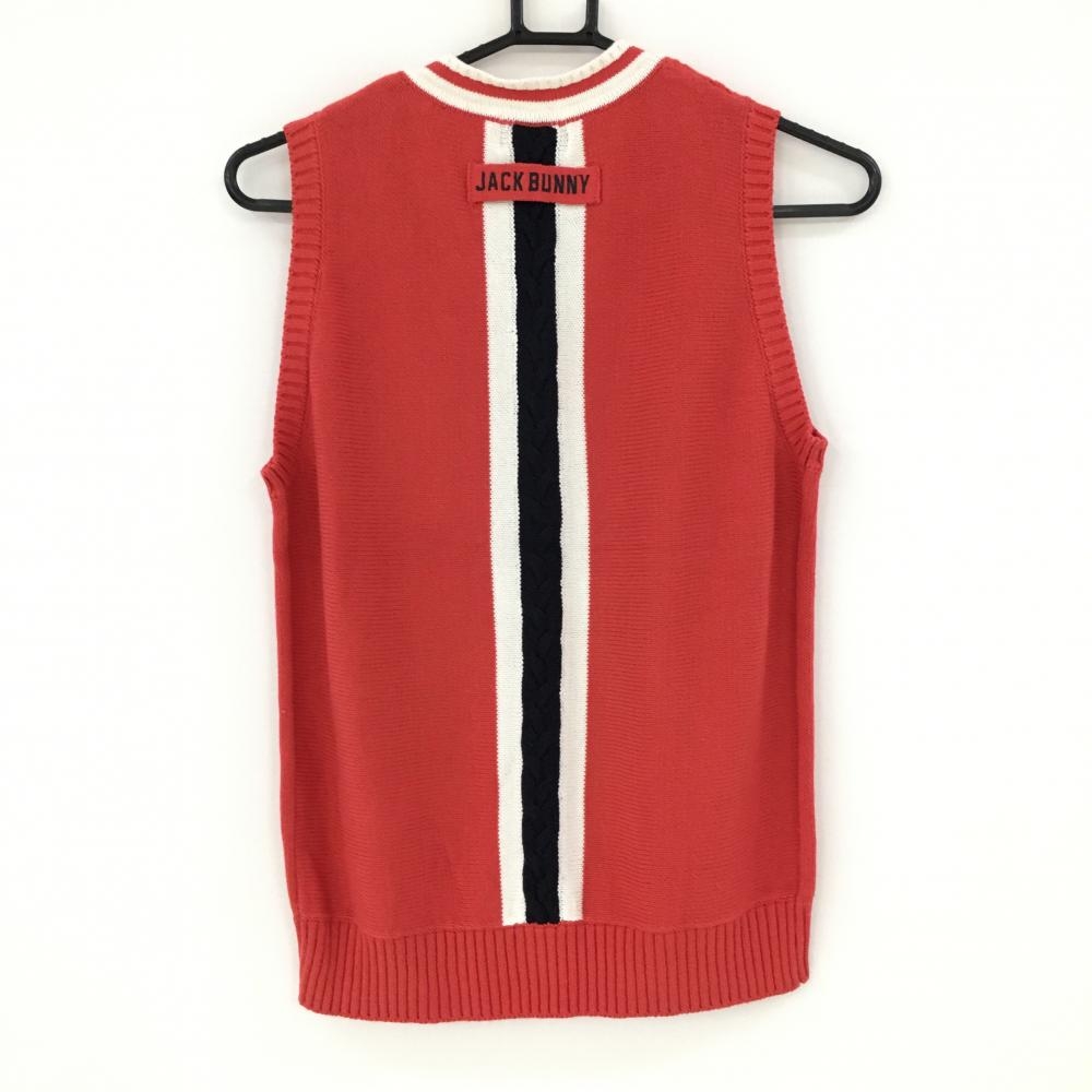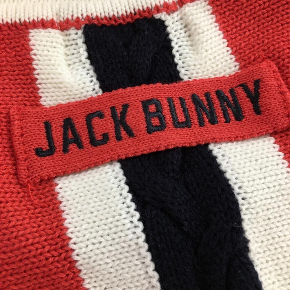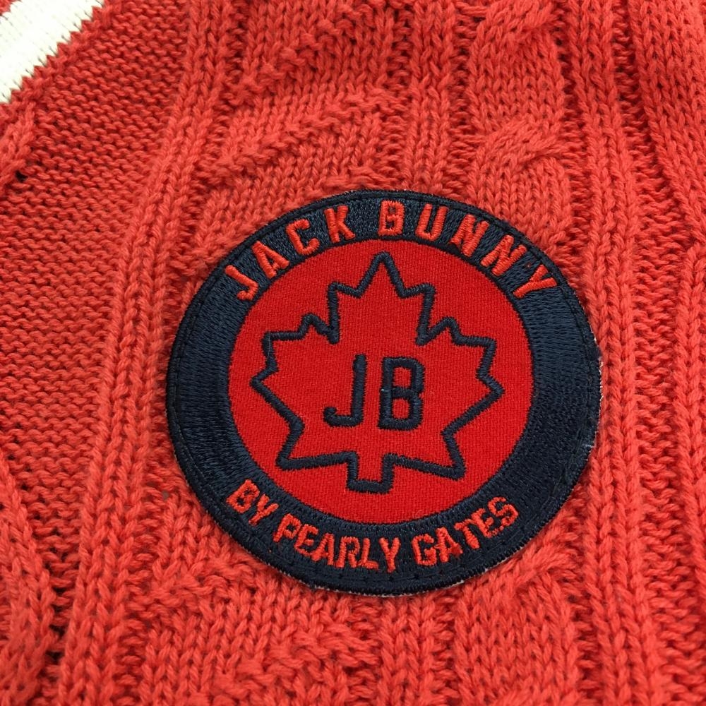 【美品】ジャックバニー ニットベスト レッド×白 ケーブル編み アクリル混 Vネック ワッペン レディース 1(M) ゴルフウェア Jack Bunny