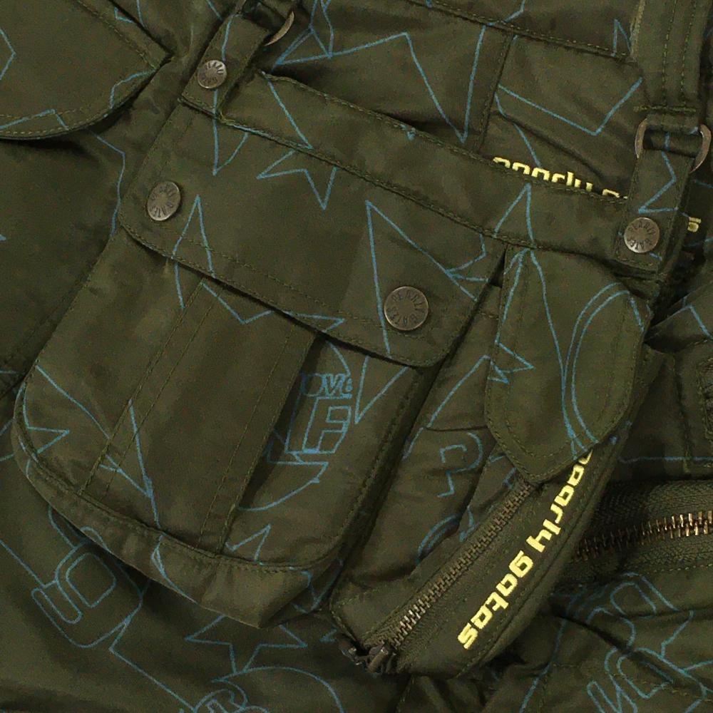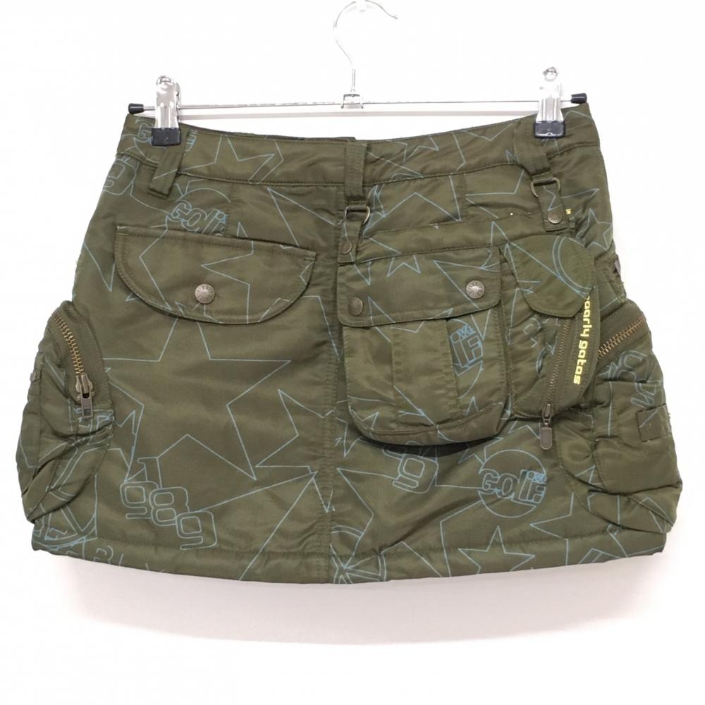 【美品】パーリーゲイツ 中綿カーゴスカート ダークグリーン×ライトブルー 星柄 レディース 0(S) ゴルフウェア PEARLY GATES
