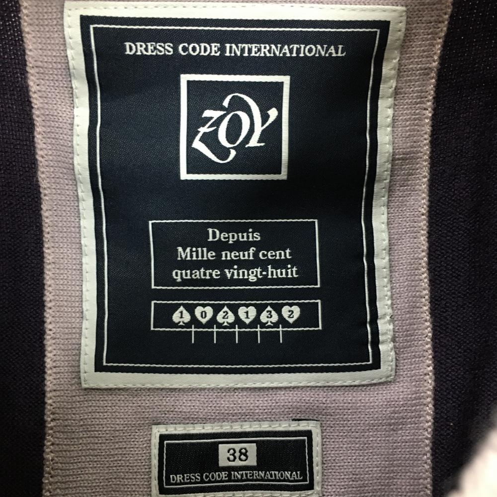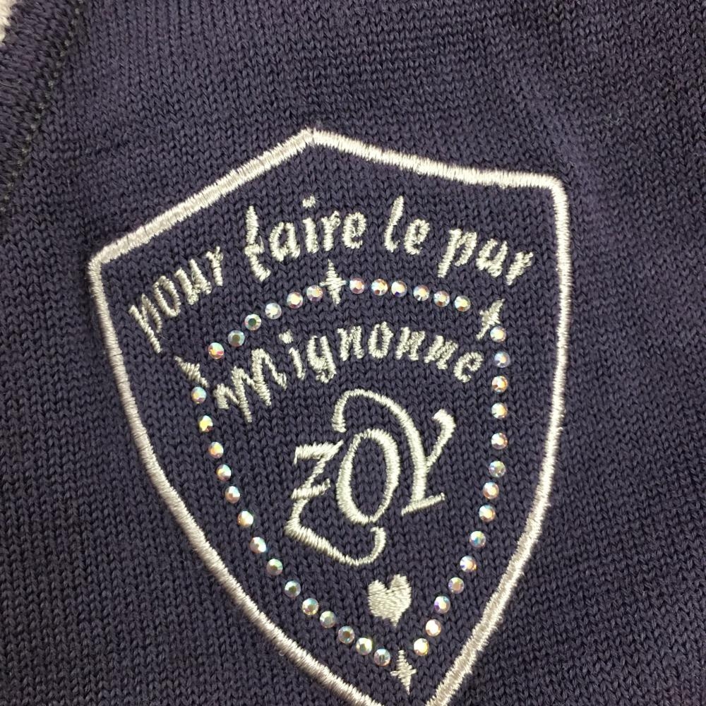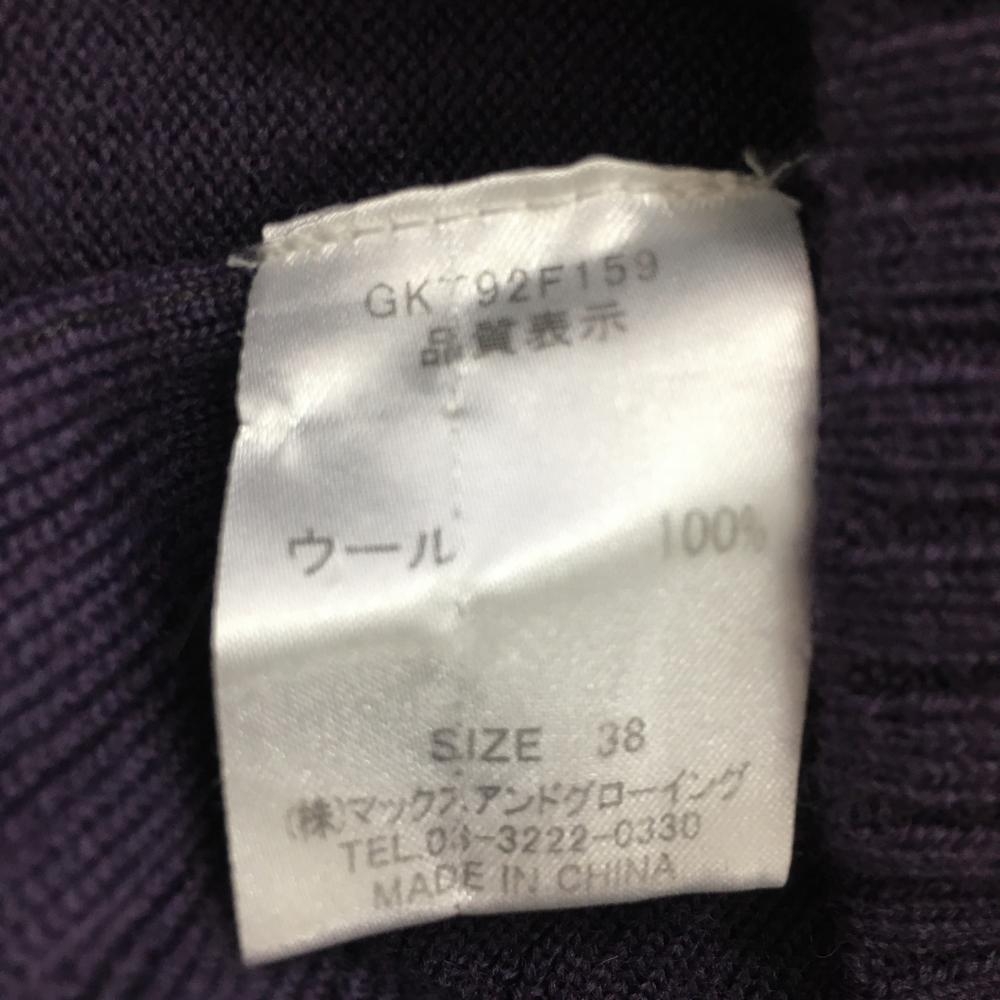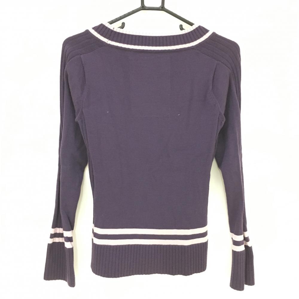 【美品】ゾーイ 長袖ニットセーター パープル Vネック 襟袖裾ライン レディース 38 ゴルフウェア ZOY