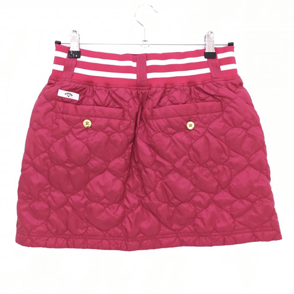 【超美品】キャロウェイ 中綿スカート ピンクレッド×白 ハートキルティング 薄中綿 ウエストゴム レディース M ゴルフウェア Callaway