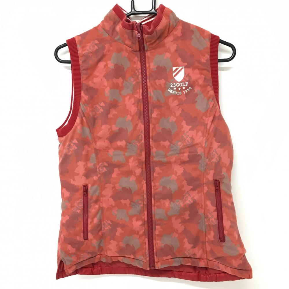 23区ゴルフ リバーシブル中綿ベスト レッド×白 キルティング 裏オレンジレッド×ベージュ 迷彩柄 レディース Ⅲ(L) ゴルフウェア 23区
