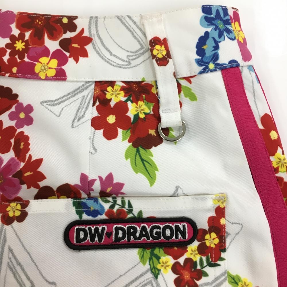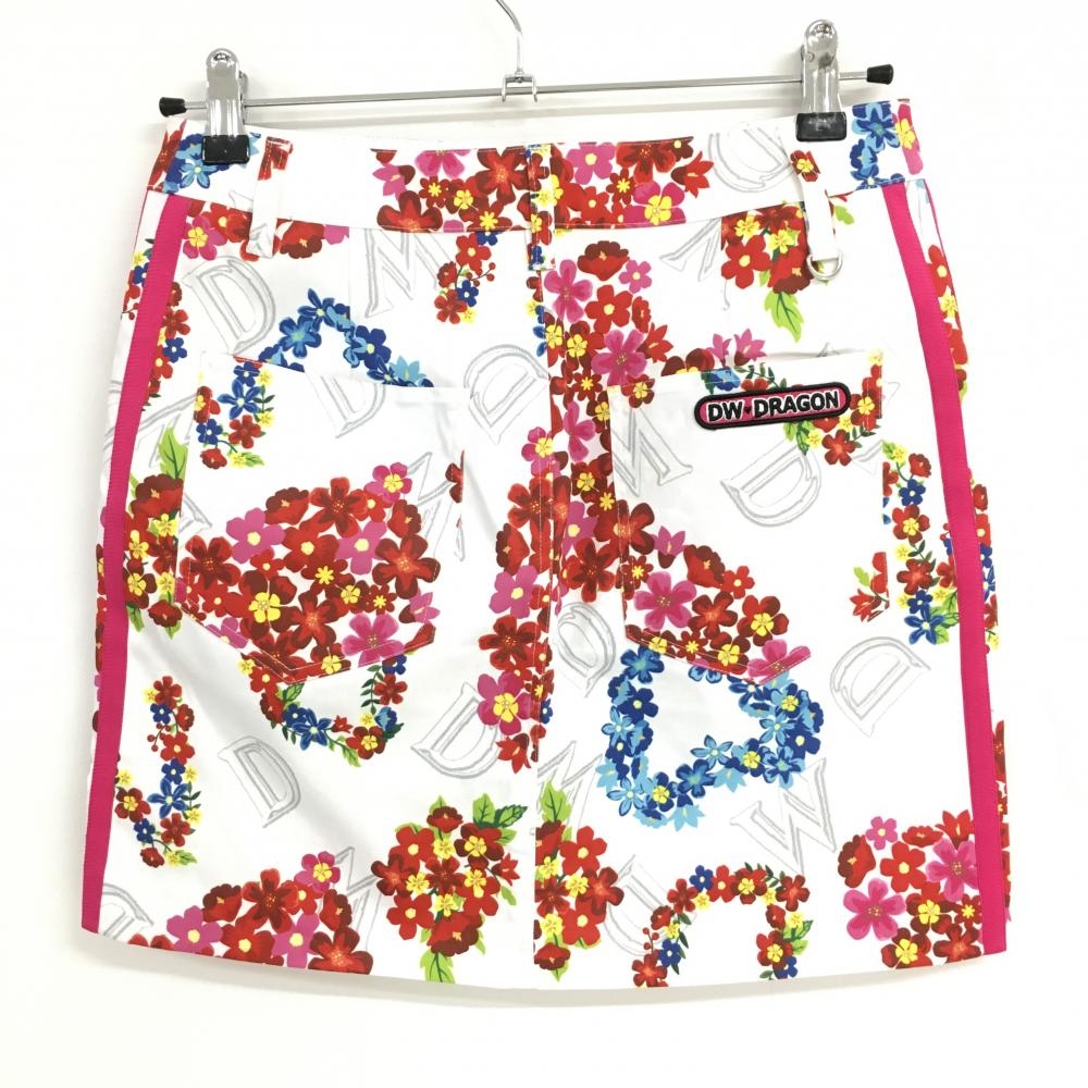 ダンスウィズドラゴン スカート 白×レッド 花柄 サイドライン レディース 2(M) ゴルフウェア Dance With Dragon