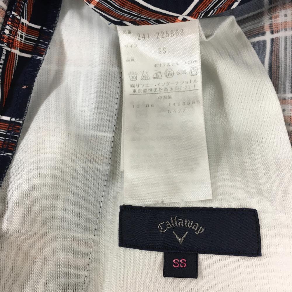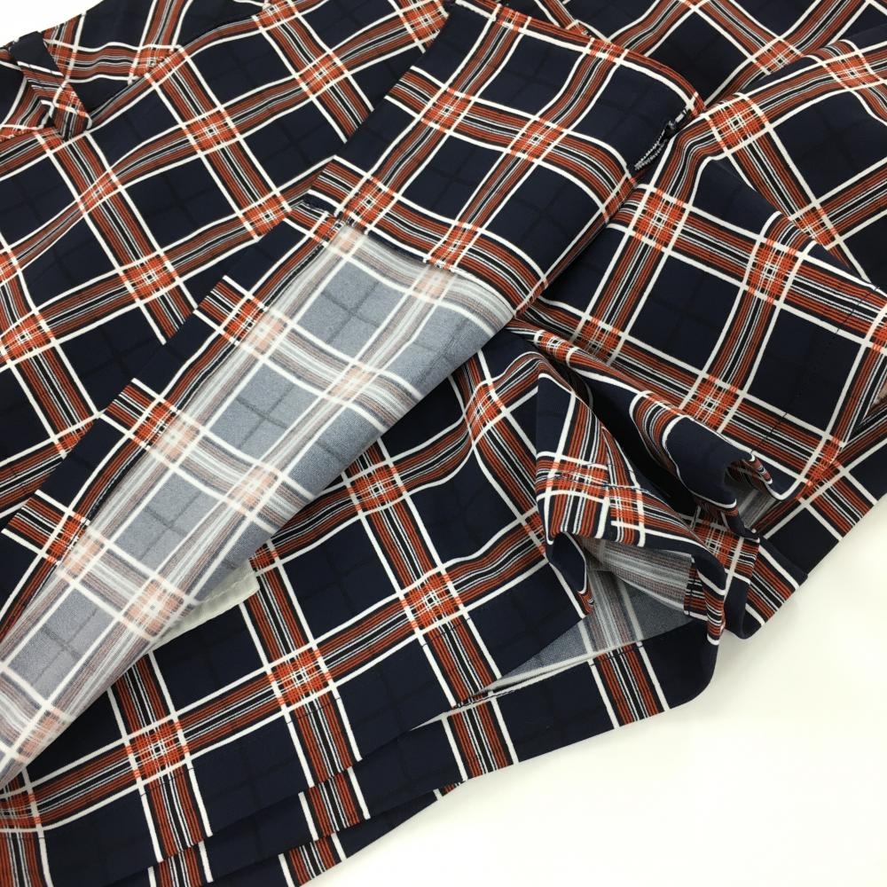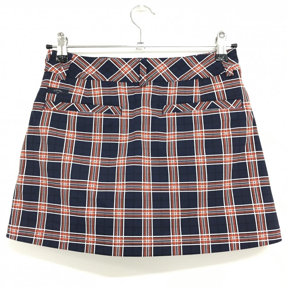 【超美品】キャロウェイ スカート ネイビー×オレンジ チェック 内側インナーパンツ レディース SS ゴルフウェア Callaway