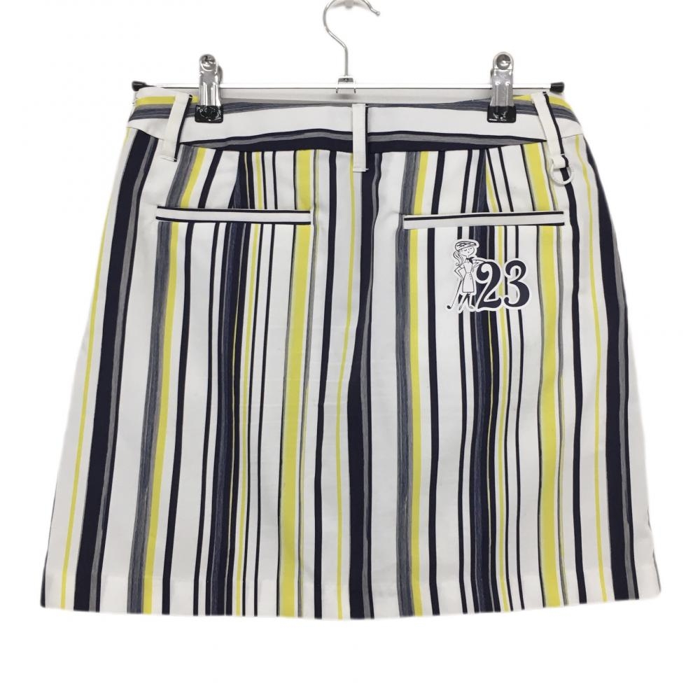 23区ゴルフ スカート 白×ネイビー×イエロー ストライプ レディース 61 ゴルフウェア 23区