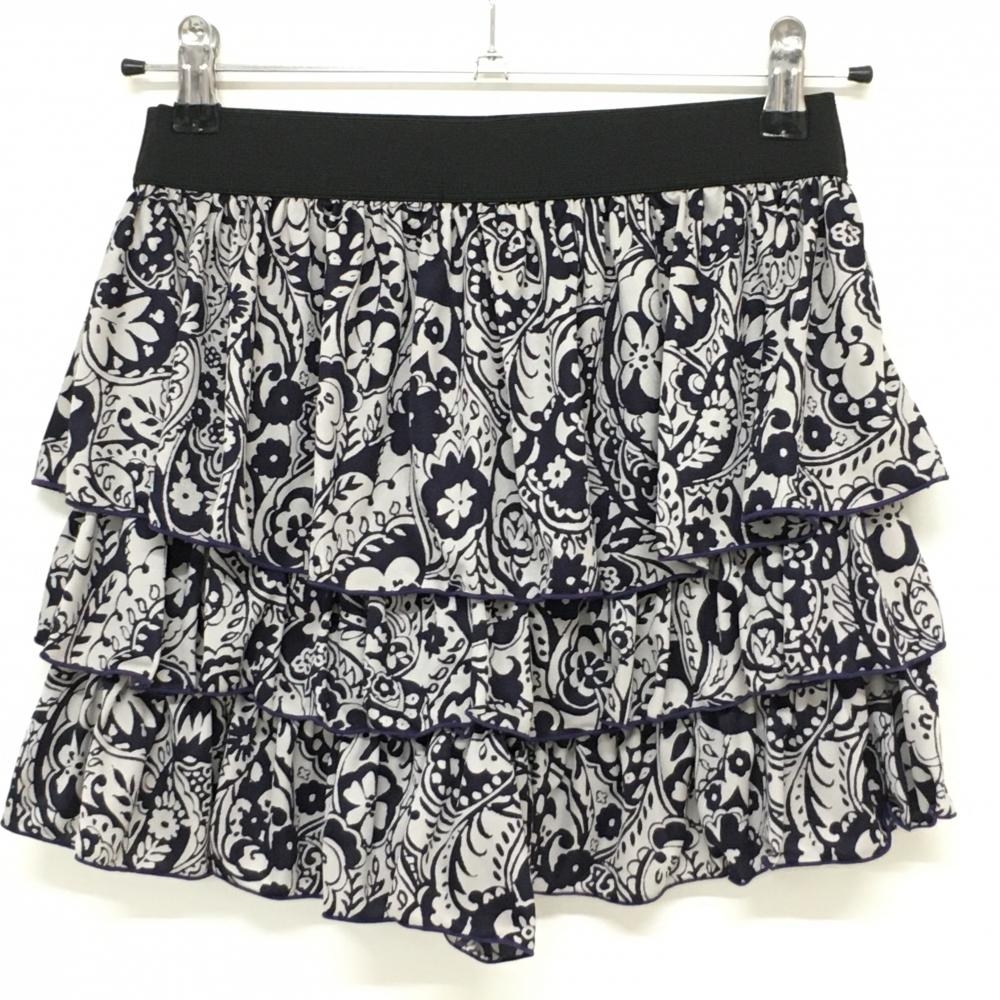 【新品】エフィカス キュロットスカート ライトグレー×ネイビー 花柄 ウエストゴム 3段フリル レディース 1 ゴルフウェア efficace