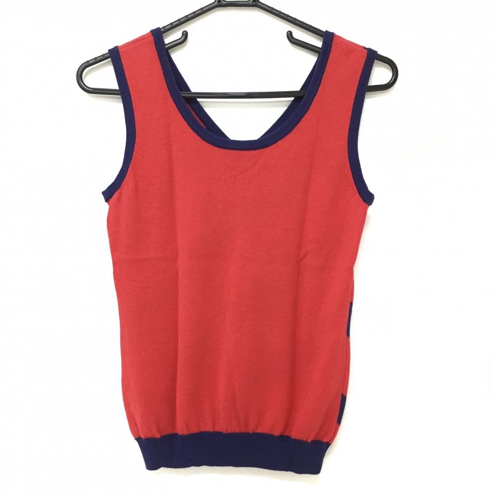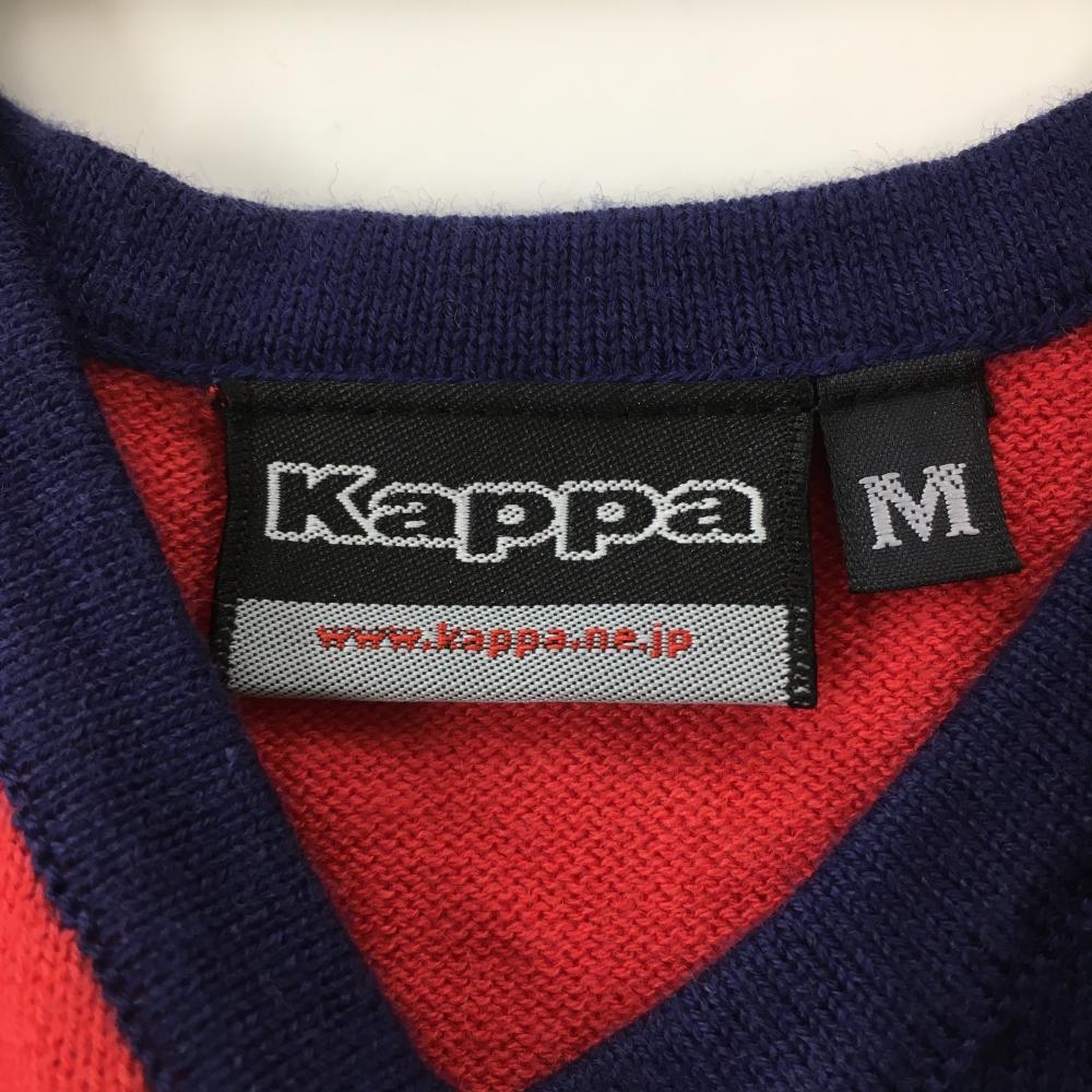 【超美品】カッパ ニットベスト レッド×パープル 斜めストライプ Vネック レディース M ゴルフウェア Kappa