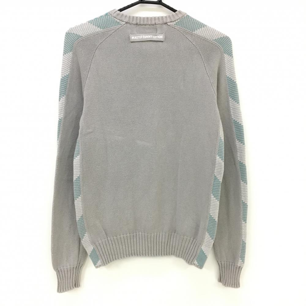 【美品】マスターバニー セーター グレー×ライトブルー サイドヘリンボーン柄 レディース 0(S) ゴルフウェア MASTER BUNNY EDITION