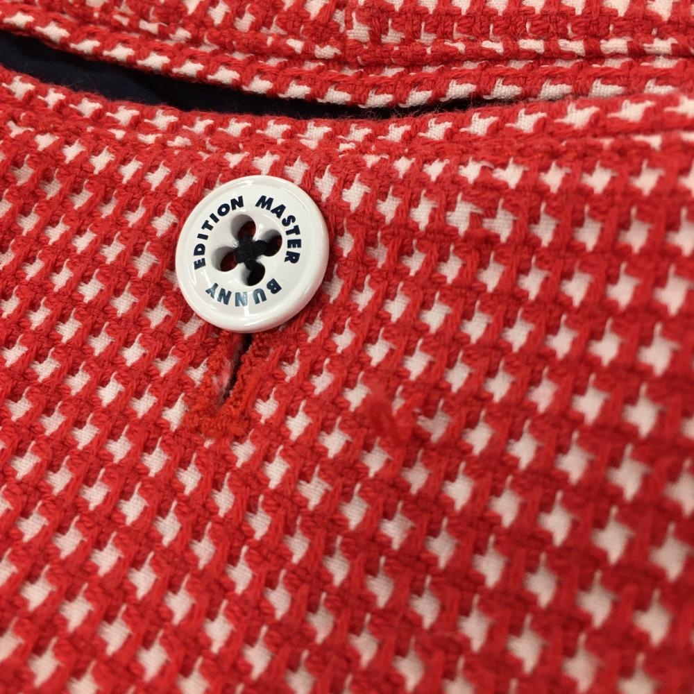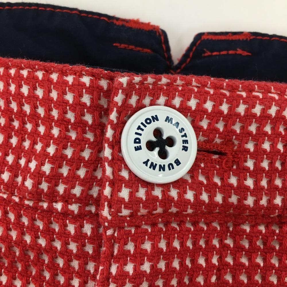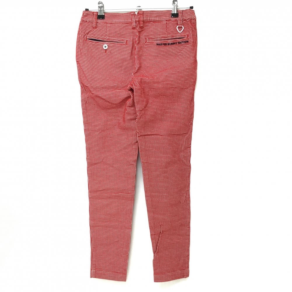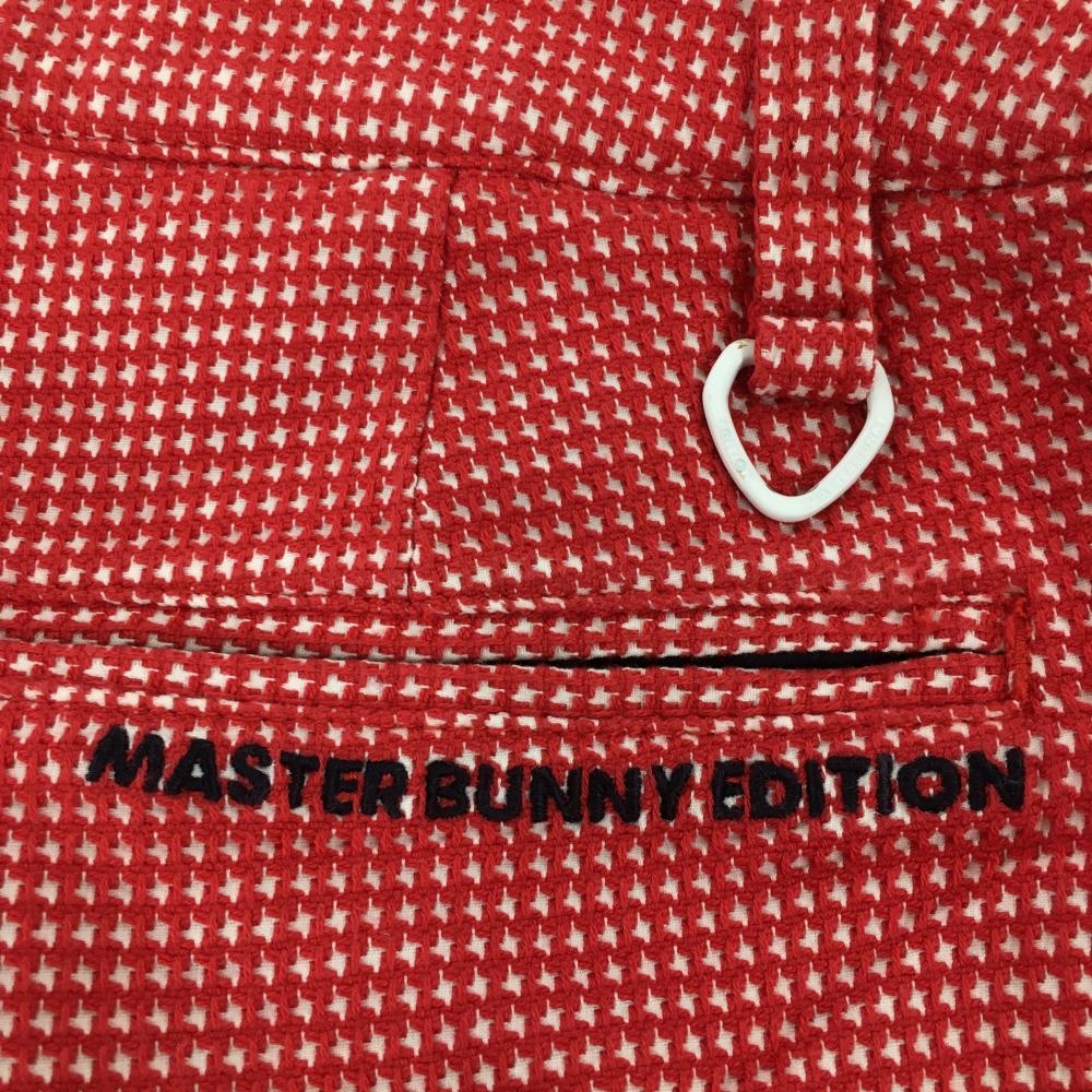 【美品】マスターバニー パンツ レッド×白 凹凸千鳥格子 ストレッチ レディース 1(M) ゴルフウェア MASTER BUNNY EDITION