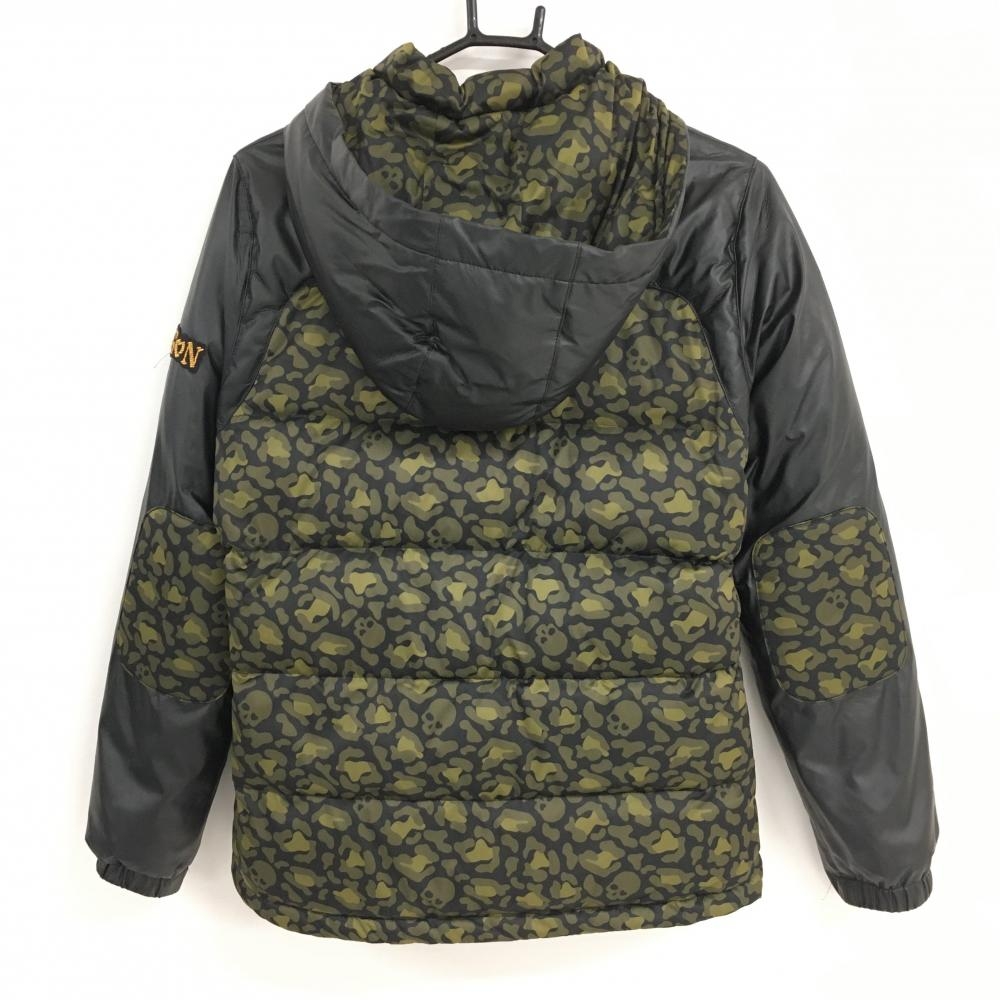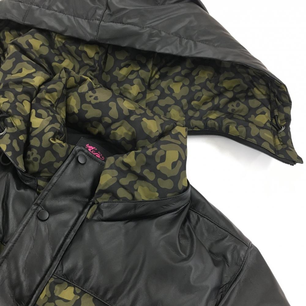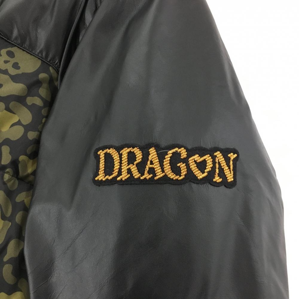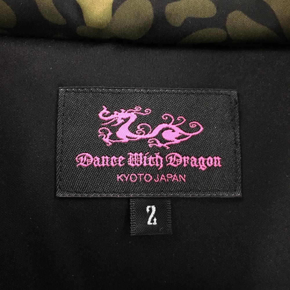 【美品】ダンスウィズドラゴン 切替ダウンジャケット 黒×カーキ 合成皮革 カミフラ レディース 2(M) ゴルフウェア Dance With Dragon