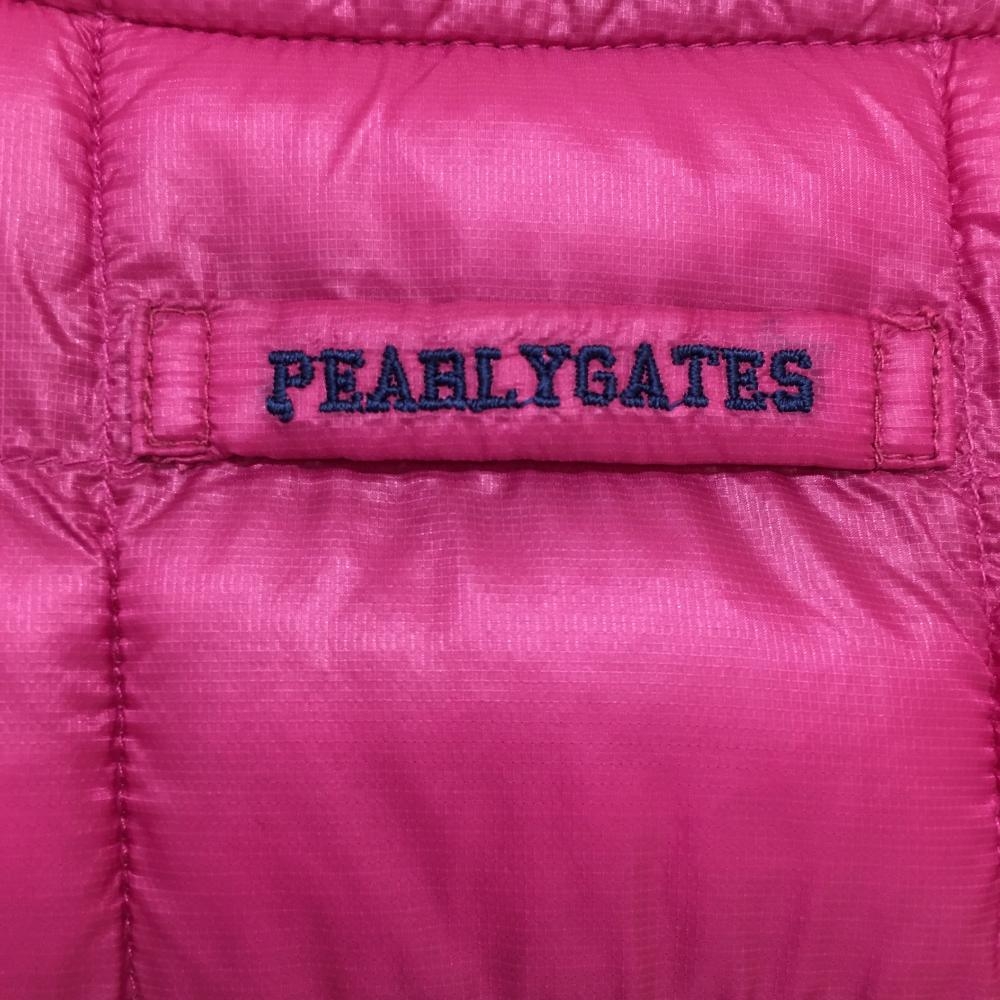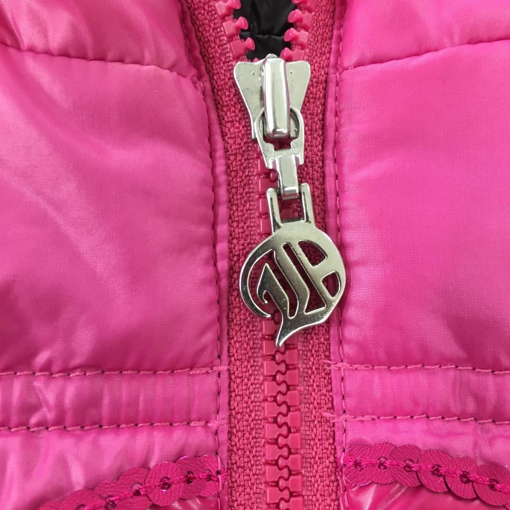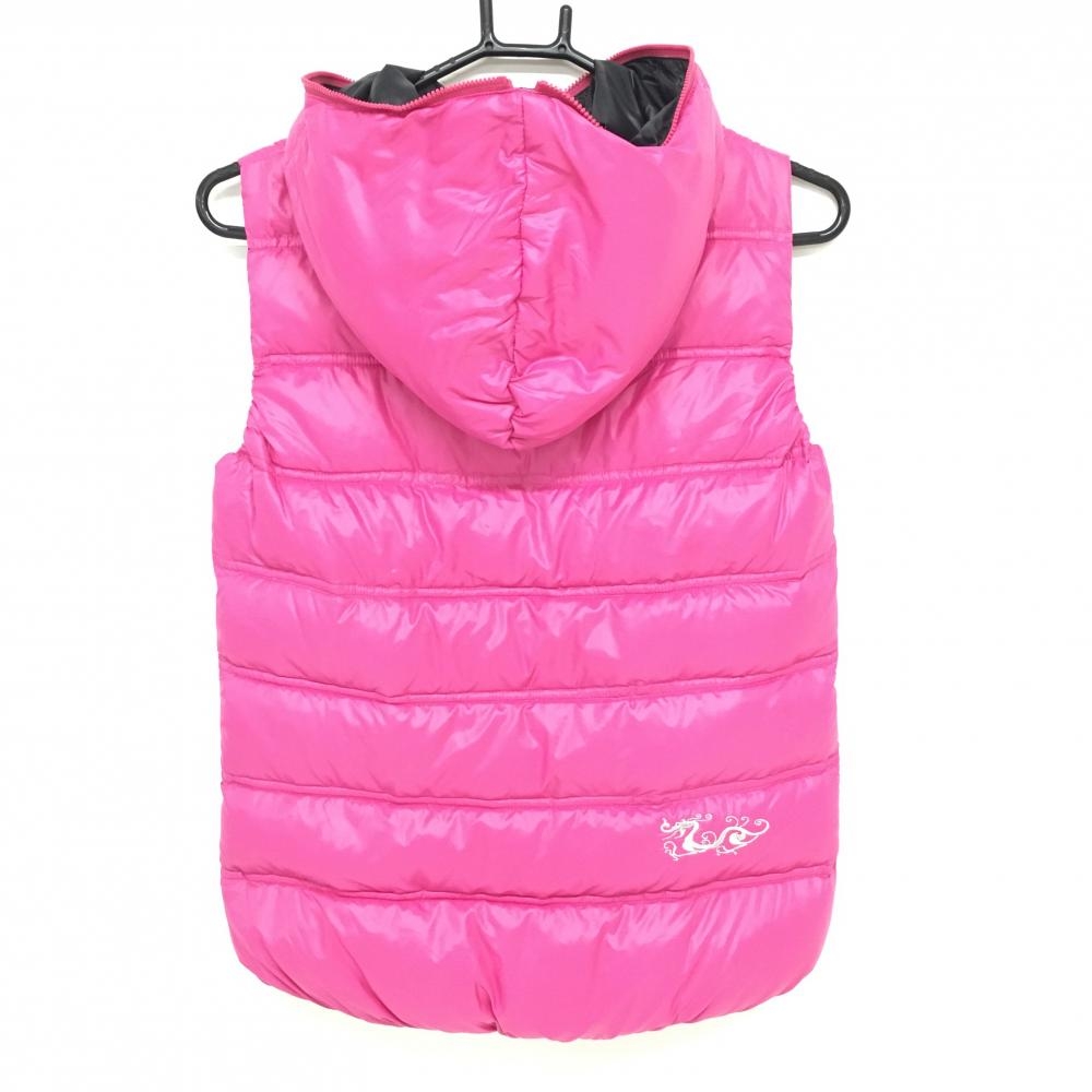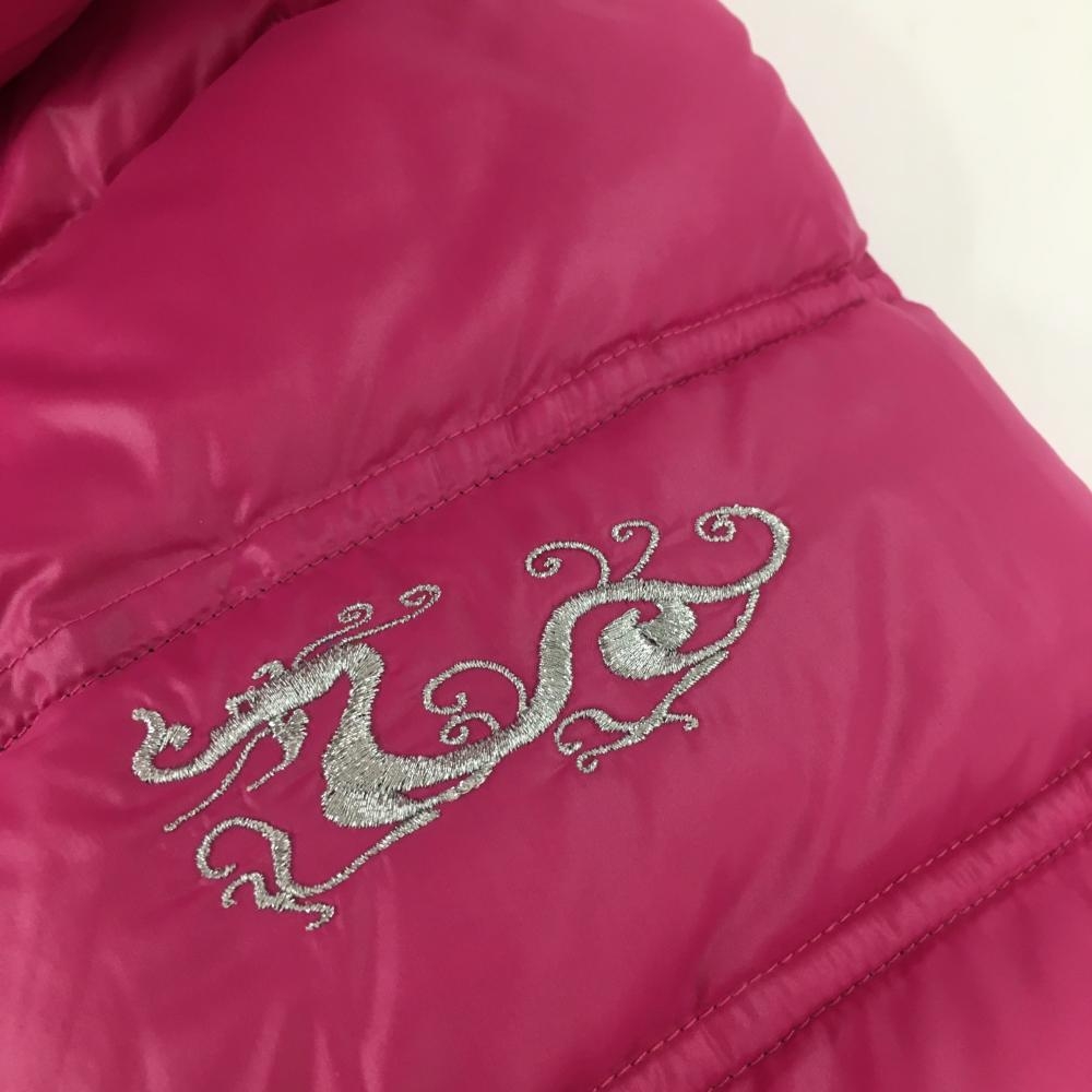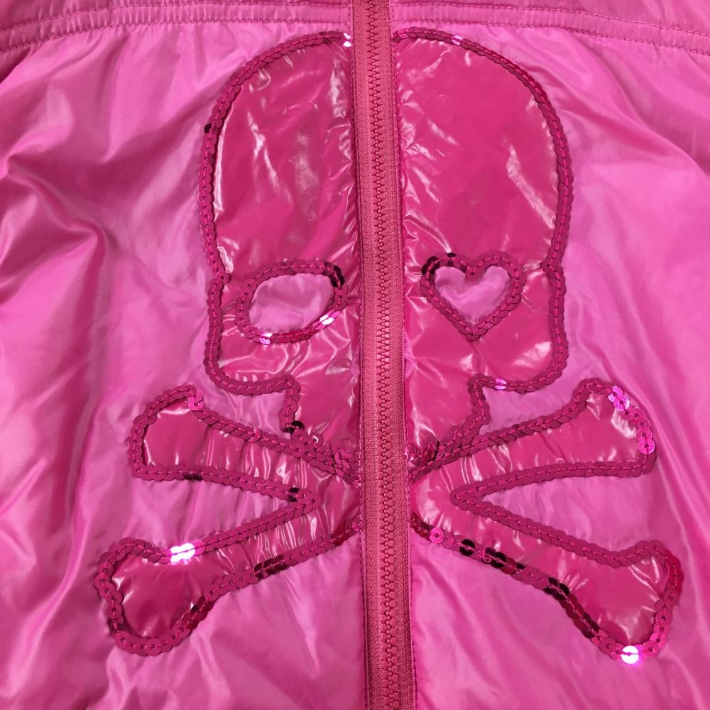 【美品】ダンスウィズドラゴン フード付きダウンベスト ピンク スパンコールスカル レディース 2(M) ゴルフウェア Dance With Dragon