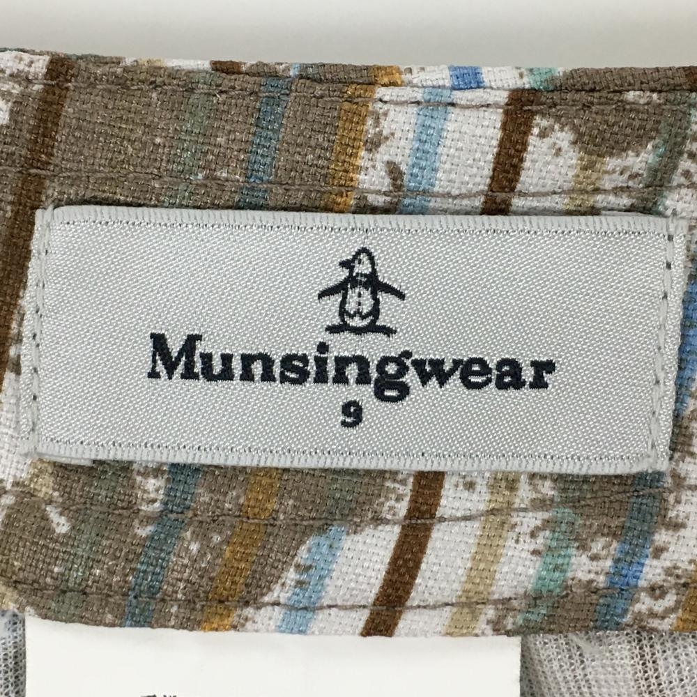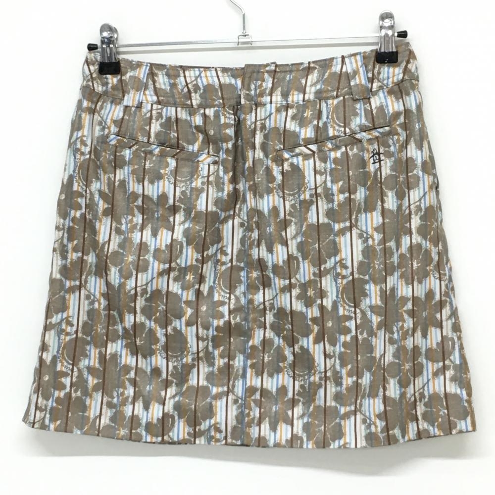 【超美品】マンシングウェア スカート ブラウン×ブルー 花柄 ストライプ インナーパンツ付 レディース 9(M) ゴルフウェア Munsingwear