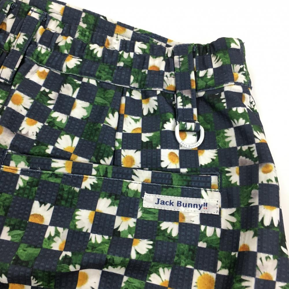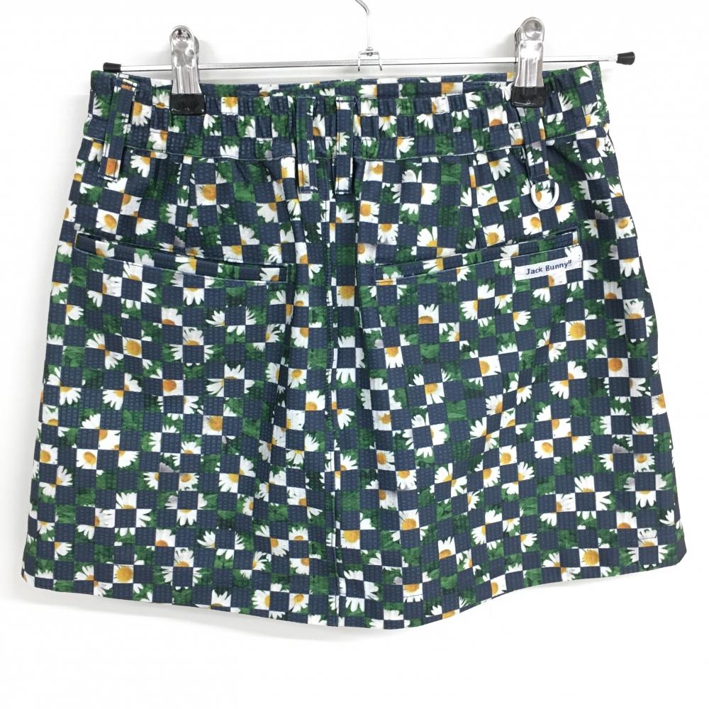 【超美品】ジャックバニー スカート ネイビー×白×黄色 花柄 ブロックチェック レディース 0(S) ゴルフウェア Jack Bunny