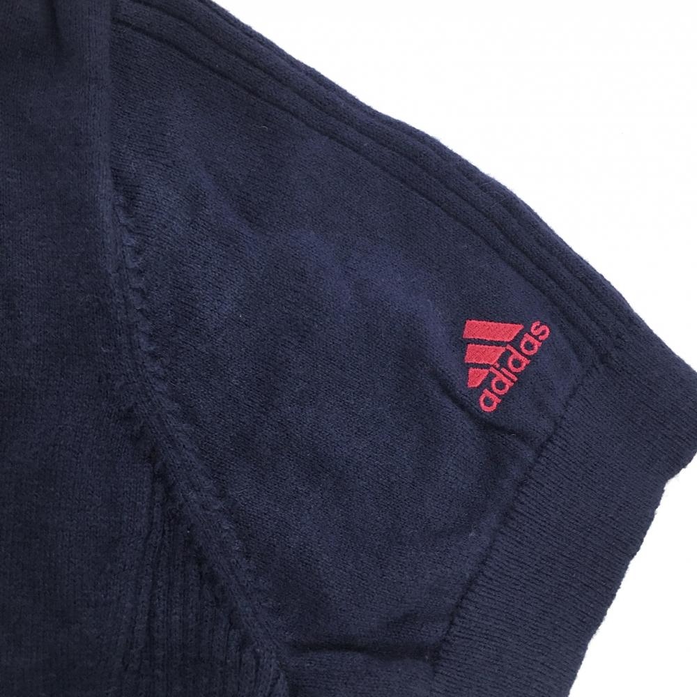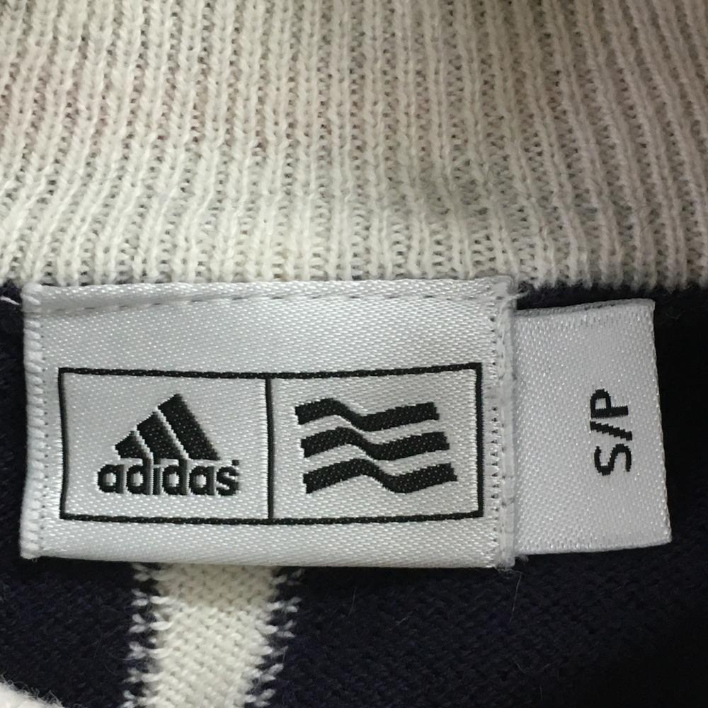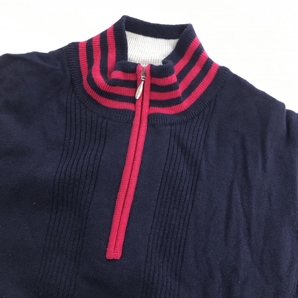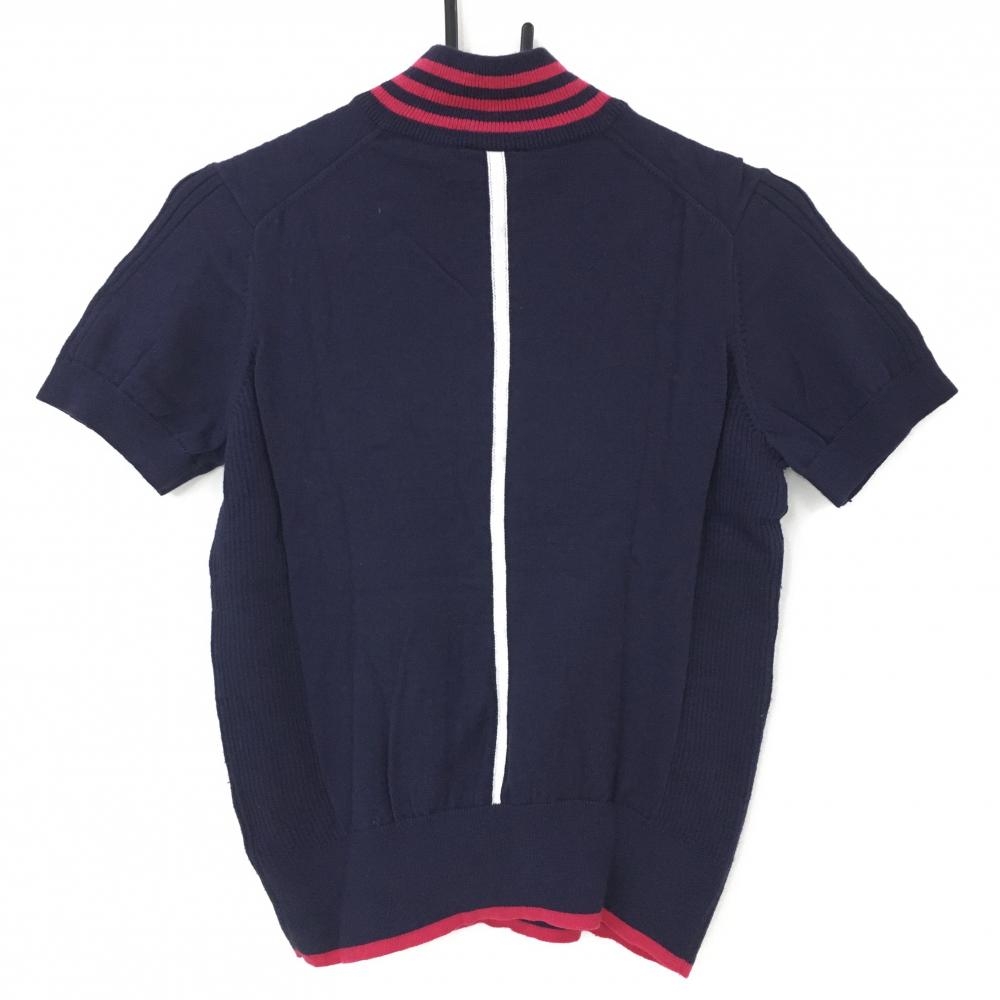 【美品】アディダス 半袖ハイネックセーター ネイビー×ピンク ニット ウール混 ハーフジップ レディース S/P ゴルフウェア adidas