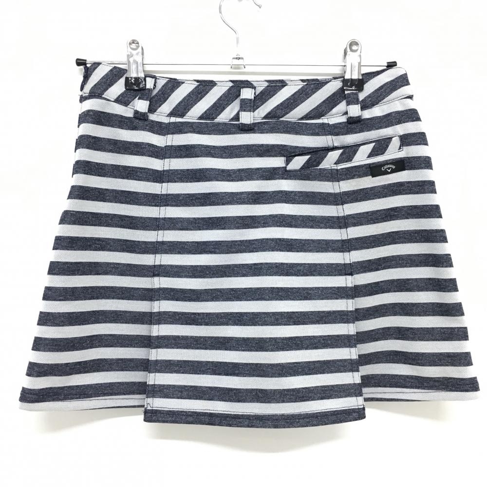 キャロウェイ キュロットスカート ネイビー×白 ボーダー 斜めストライプ レディース M ゴルフウェア Callaway