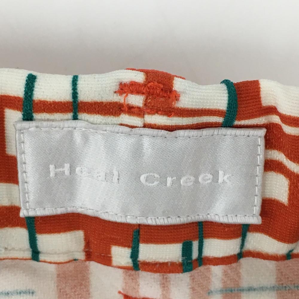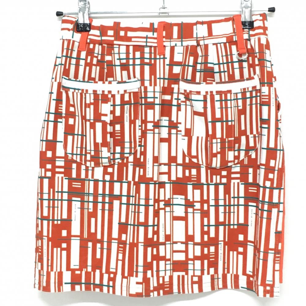 【超美品】ヒールクリーク スカート オレンジ×白 総柄 レディース 38 ゴルフウェア Heal Creek