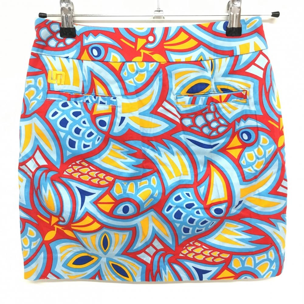 ラウドマウス スカート ブルー×レッド クックアドゥウードゥルドゥー 総柄 レディース US 00 ゴルフウェア LOUDMOUTH