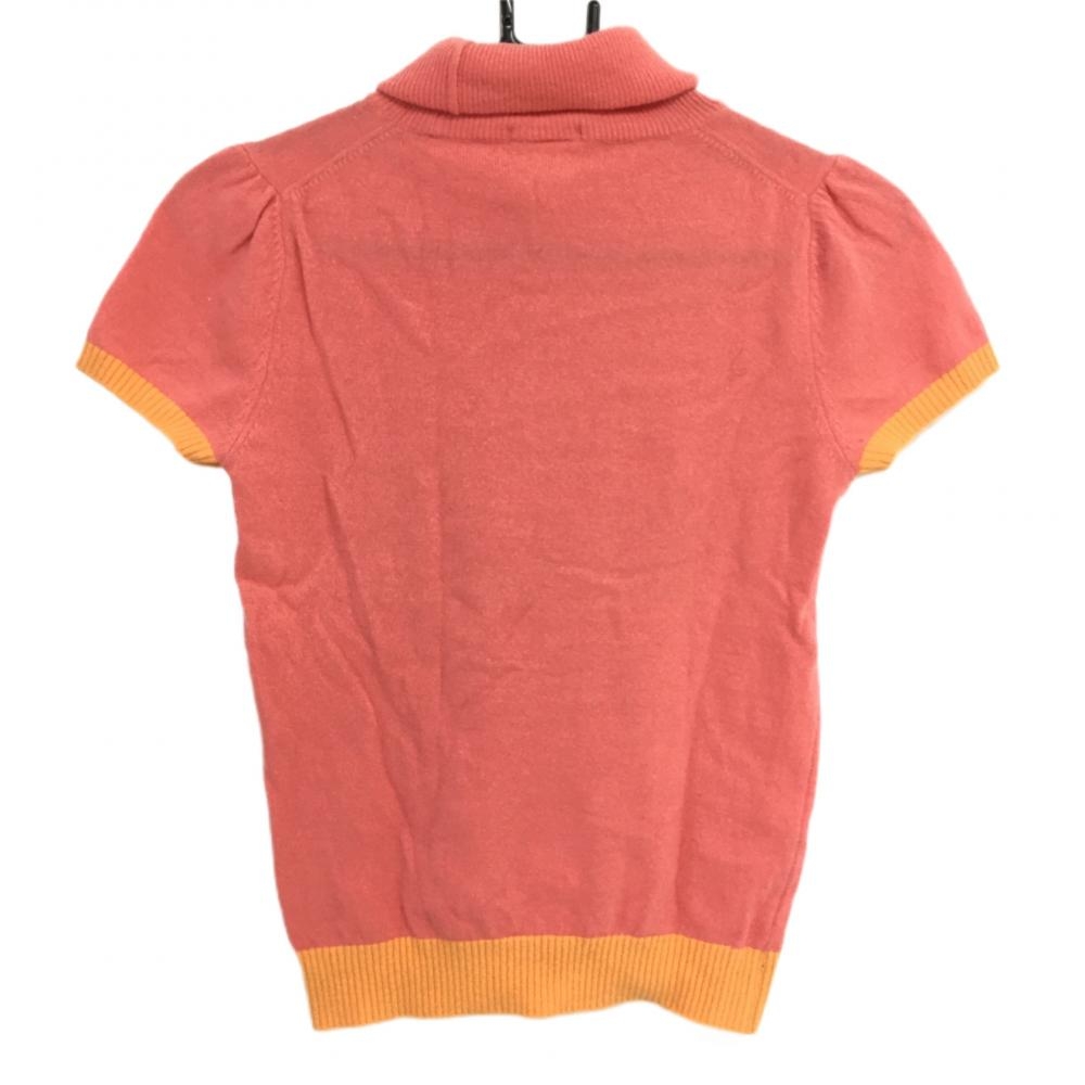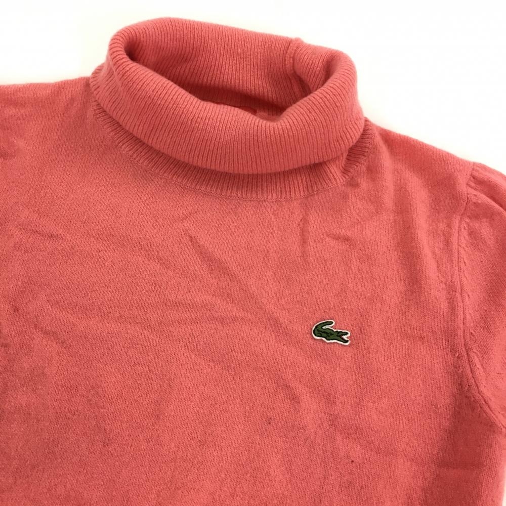 【超美品】ラコステ 半袖セーター ピンク×オレンジ ハイネック レディース 38 ゴルフウェア LACOSTE