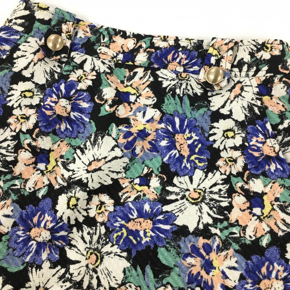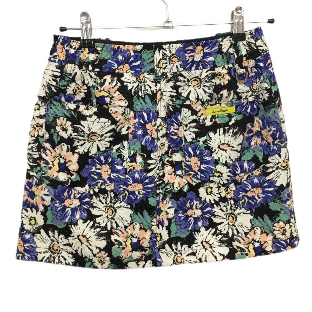 ジュンアンドロペ スカート 黒×ブルー 織生地 花柄総柄 レディース M ゴルフウェア JUN&ROPE