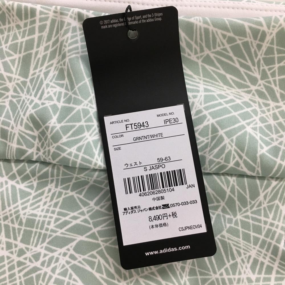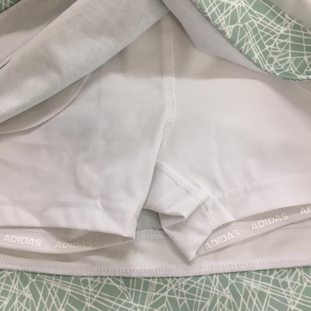 【新品】アディダス ストレッチスカート グリーン系×白 総柄 内側インナーパンツ レディース S ゴルフウェア adidas