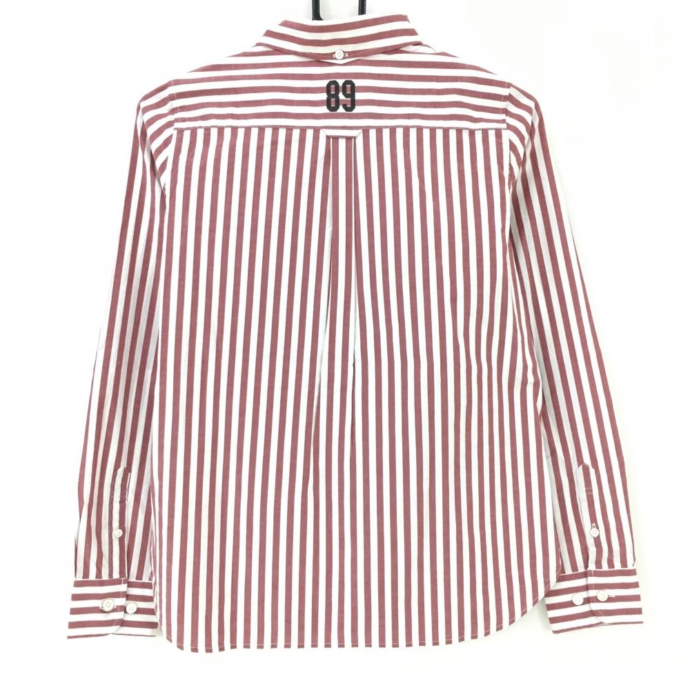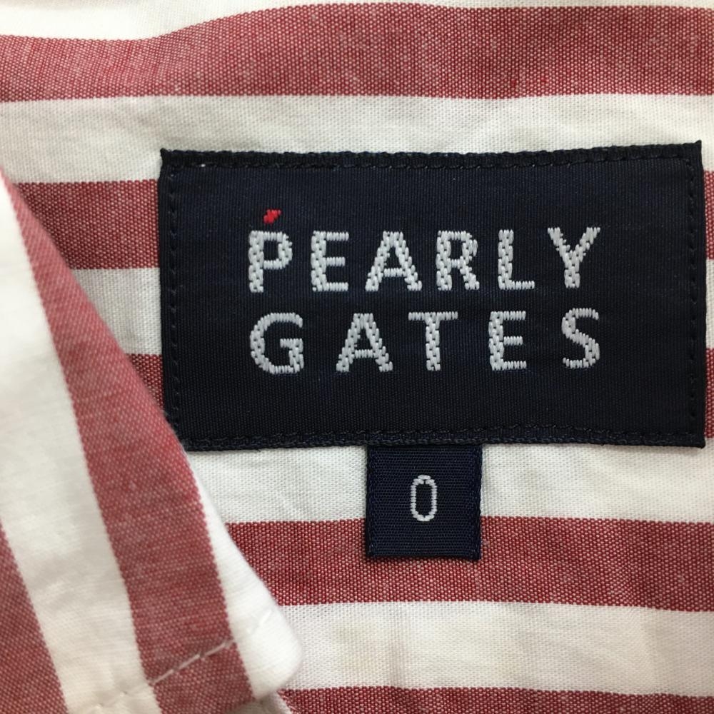 【美品】パーリーゲイツ 長袖シャツ 白×ボルドー ストライプ ボタンダウン レディース 0(S) ゴルフウェア PEARLY GATES