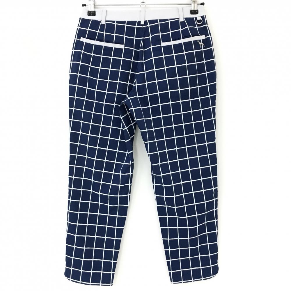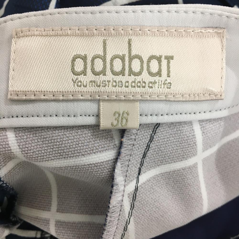 【美品】アダバット 半端丈パンツ ネイビー×グレー 格子柄 総柄 レディース 36 ゴルフウェア adabat