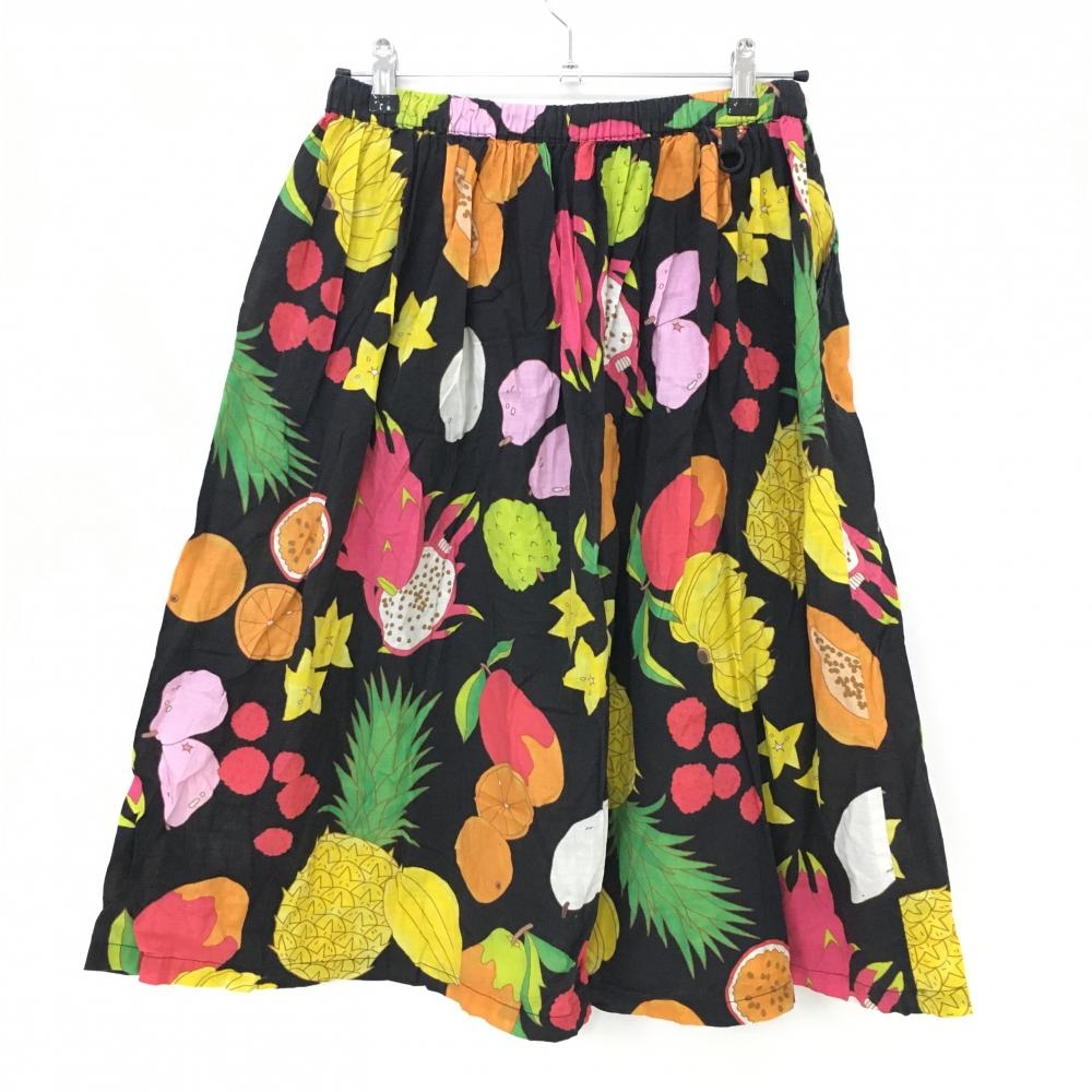 【美品】パーリーゲイツ スカート 黒 フルーツ柄 インナースカート付き レディース 1(M) ゴルフウェア PEARLY GATES